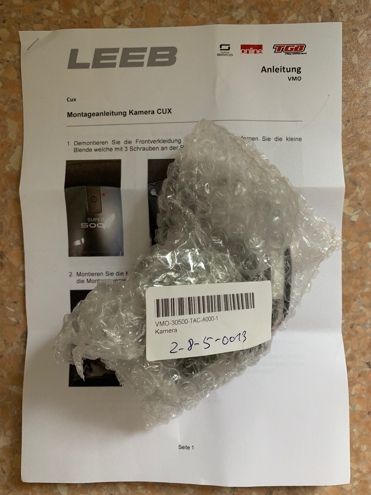 Der Einbau ist relativ leicht: Die sechs Schrauben für die Frontverkleidung lösen und diese abmontieren. Kamerablende entfernen und richtige Kamera festschrauben. Dann drei Kabel (zwei mit zwei Polen und eins mit drei Polen) verbinden. Bei mir waren die zweipoligen etwas versteckt. Frontverkleidung wieder drauf.