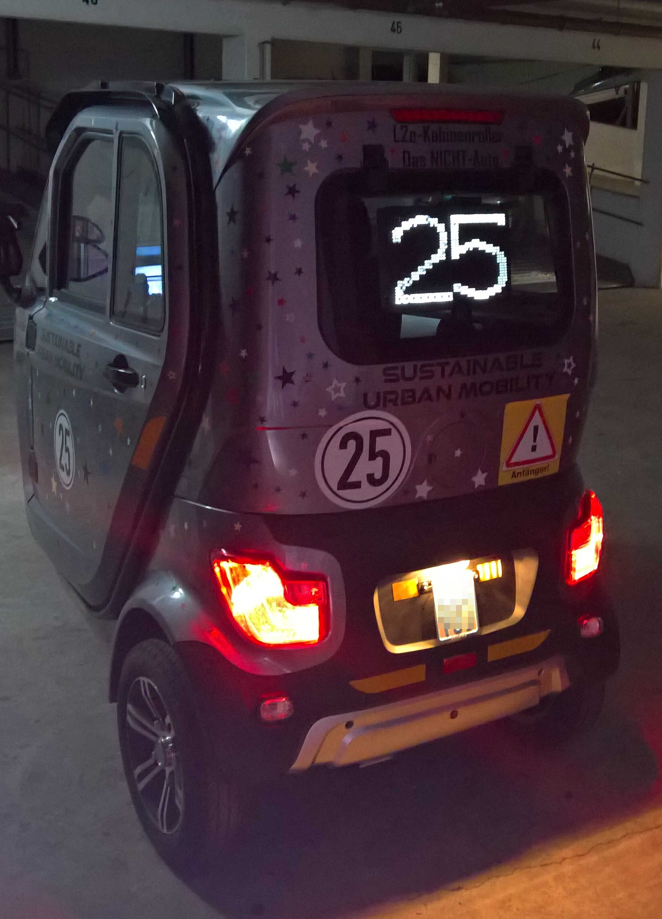Ich fahre auch einen 25 km/h Kabinenroller. An meinem ist kein 25er Schild drann und ich fahre auch sicher.