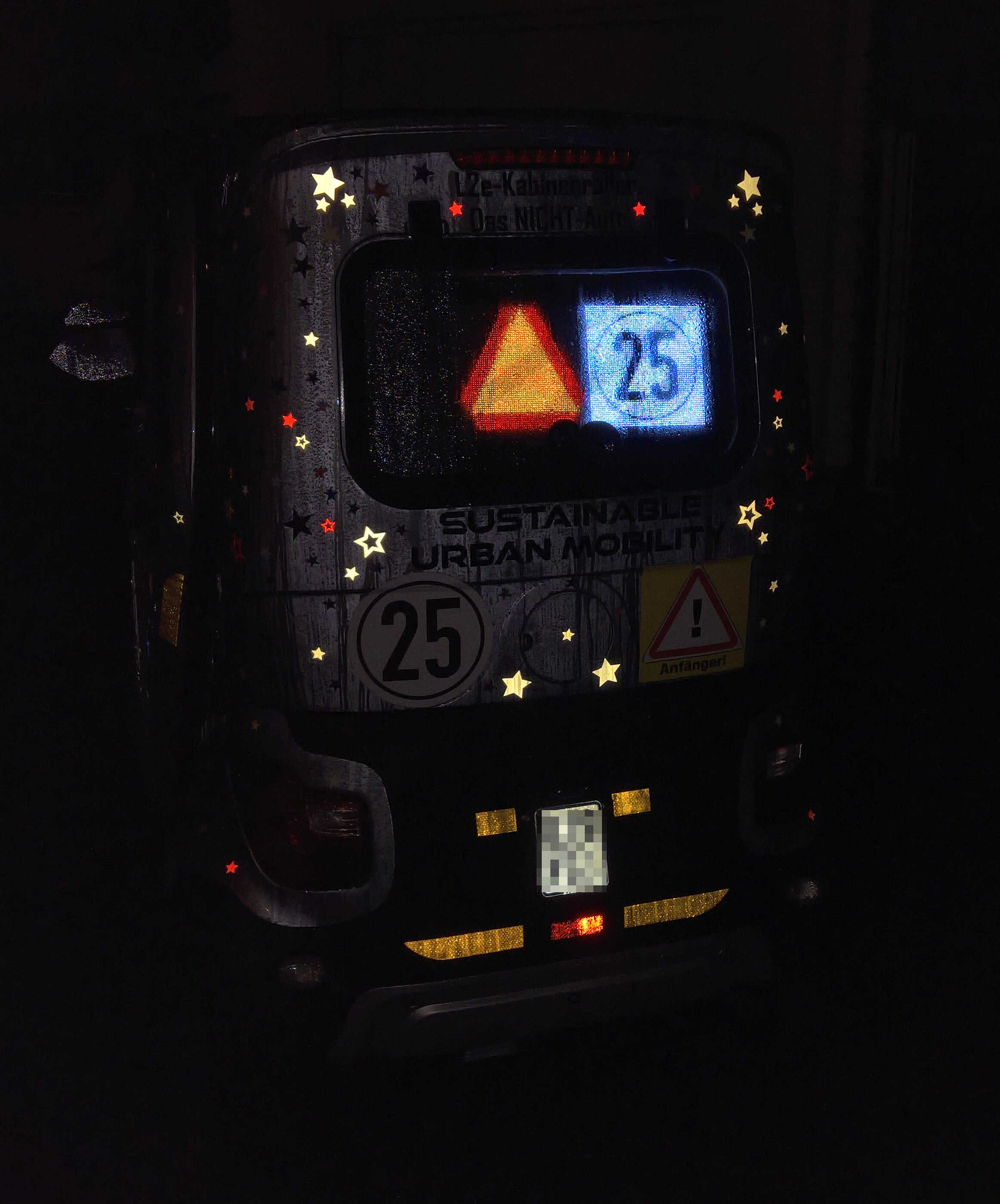 Die gelben Reflektionsfolienstreifen habe ich hinten durch rote ersetzt. Danke für den Hinweis.