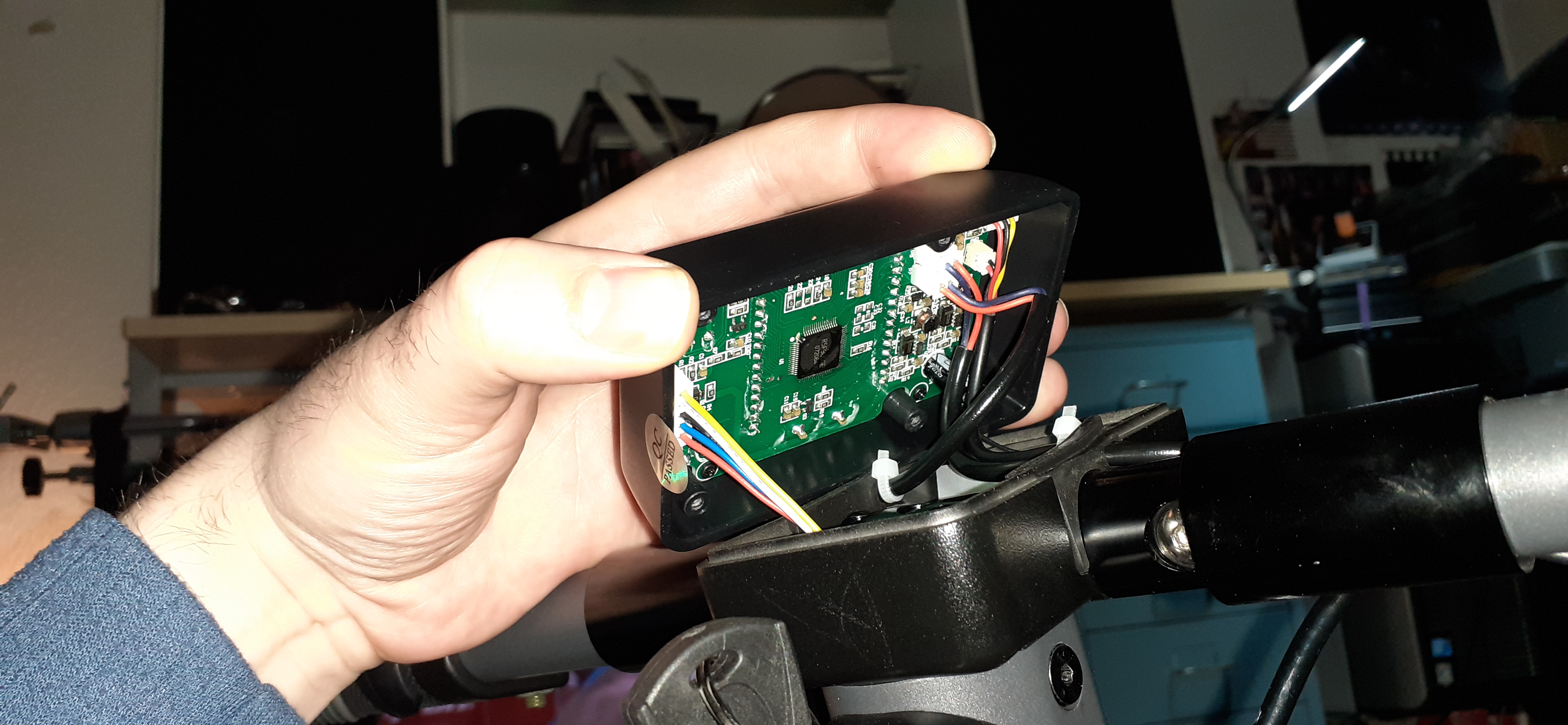 Was mir aber gleich nach dem Auspacken aufgefallen ist, das Display flackert nach Umdrehen des Zündschlüssels. Also die Beleuchtung desselben, das ist mir auch gestern beim Ausprobieren negativ aufgefallen, teilweise konnte man schon das obere Segment der Ziffern der GeschwindigkeitsAnzeige nicht mehr ablesen, geschweige denn das kleine Symbol für den Fahrmodus. Ich habe gestern abend mal das Display aufgeschraubt, auch auf Empfehlung eines StadlerAngestellten. Ich hatte mich kurz wegen eines KlickfixHalters für den Lenker beraten lassen, und da stellte sich wohl die Problematik heraus, dass die drei Kabel für Bremslichtkontakte und elektronischen Gasgriff den Befestigungsschellen im Weg sind/sein könnten. Müsste man aber hinbekommen, nach meiner jetzigen Einschätzung. Gegebenenfalls die Dichtungen etwas verändern oder eine neue aus einem Stück Gummi selberbasteln.