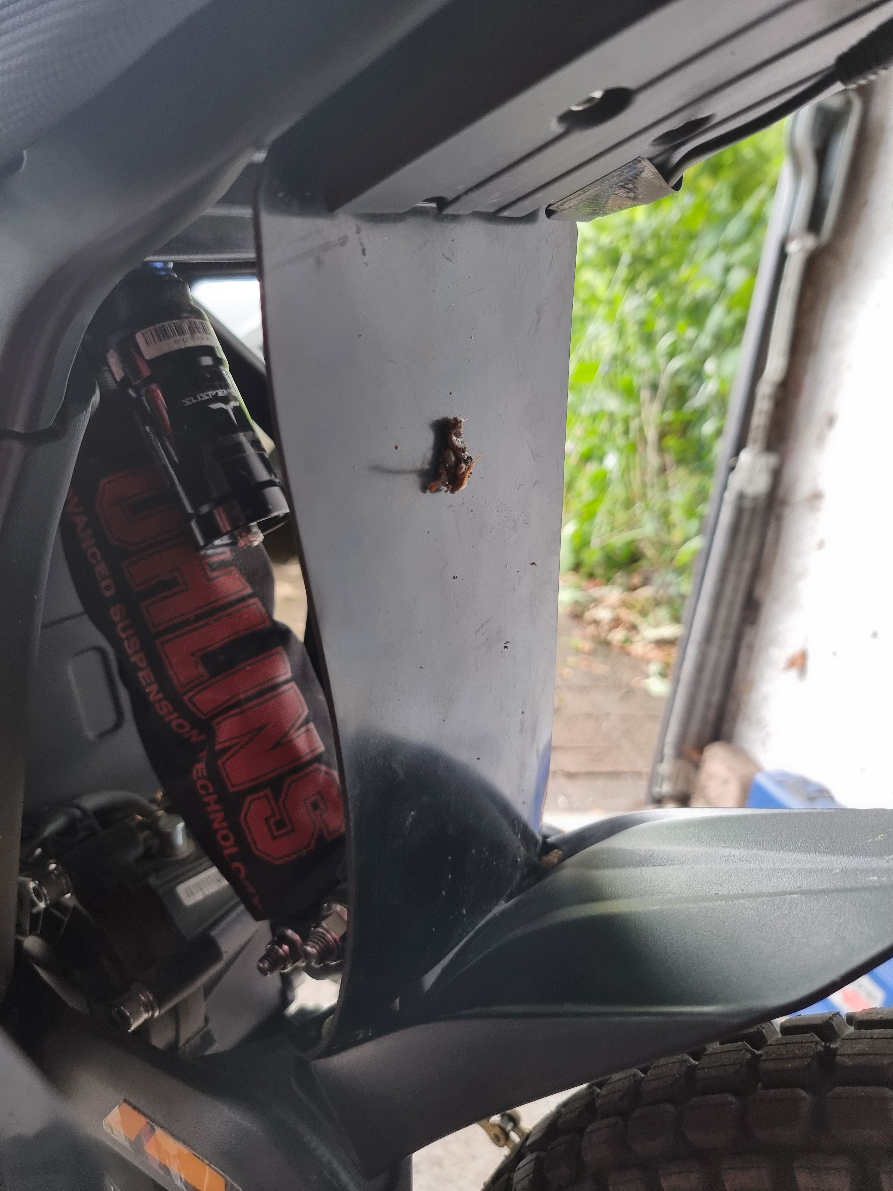 Hier der Spritschutz, den Ferderbeinschutz könnte ich jetzt entfernen.