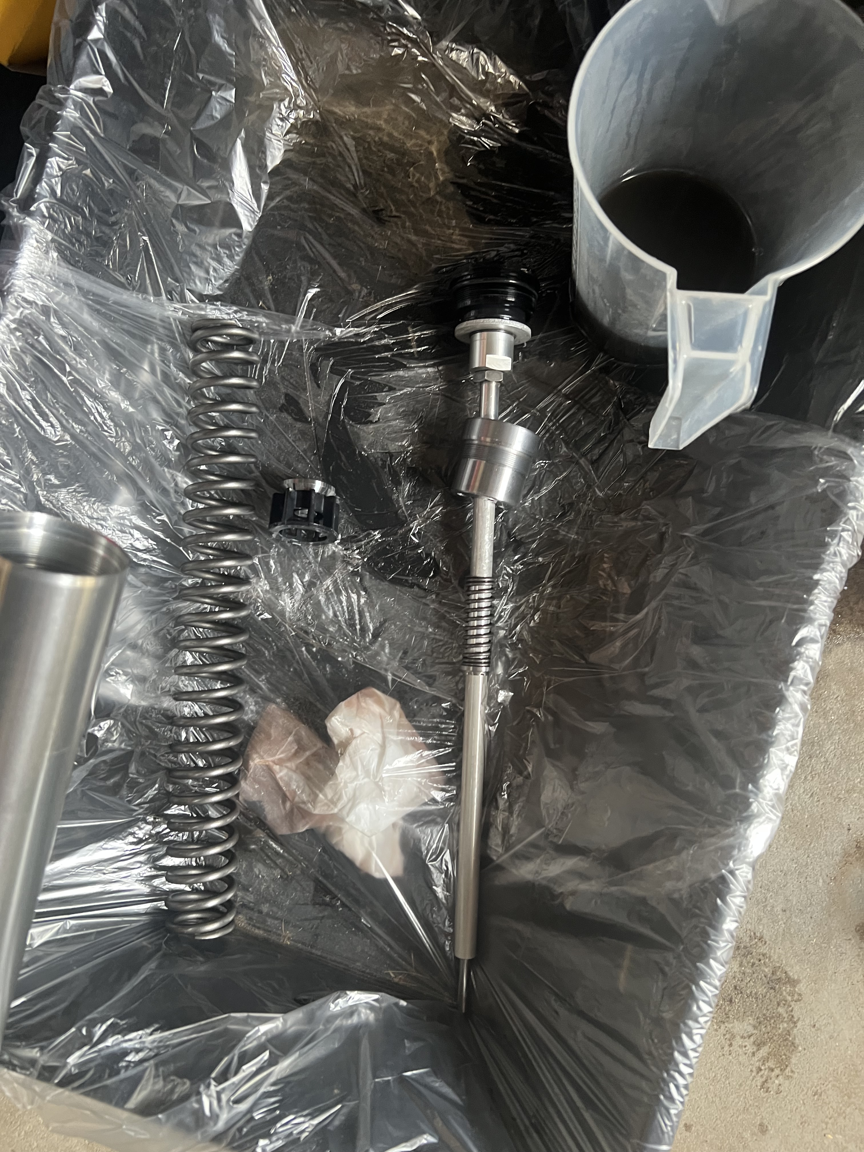 Ka ob das Öl von Showa generell Rot ist aber es war auch einiges an Abrieb drin. Alles schön gesäubert, frisches Öl rein und wieder eingebaut. Läuft