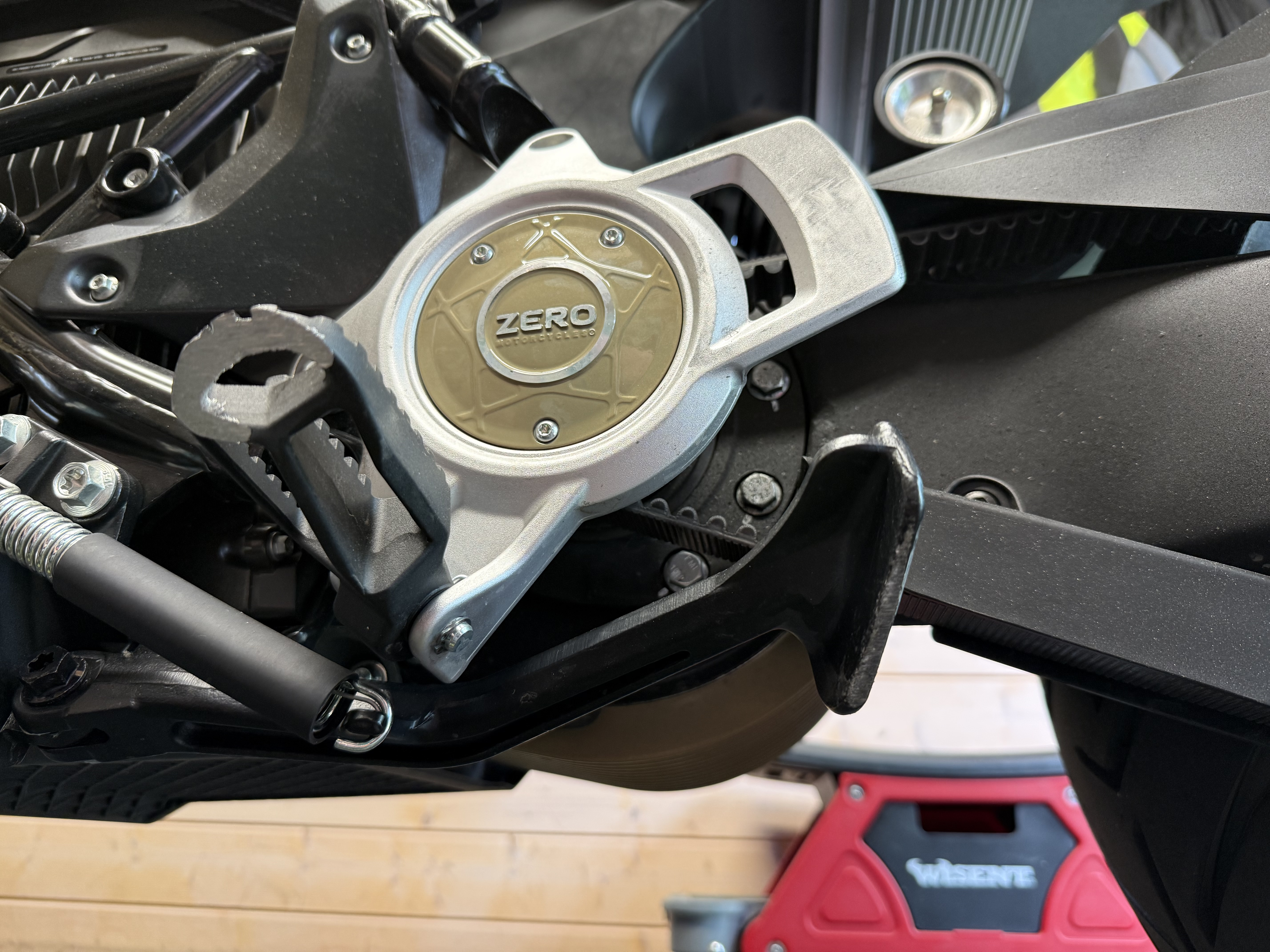 1. Ich muss nochmal an meine Fahrwerkseinstellungen ran und von der empfohlenen Einstellung (Durchhang mit Fahrer 1/3 des Federwegs) mehr in Richtung 1/4 gehen. Das bringt möglicherweise ein klein wenig mehr Bodenfreiheit, beseitigt aber nicht die Tatsache, dass die Stiefelsohle breiter ist als die Fußraste und daher immer zuerst aufsetzt.