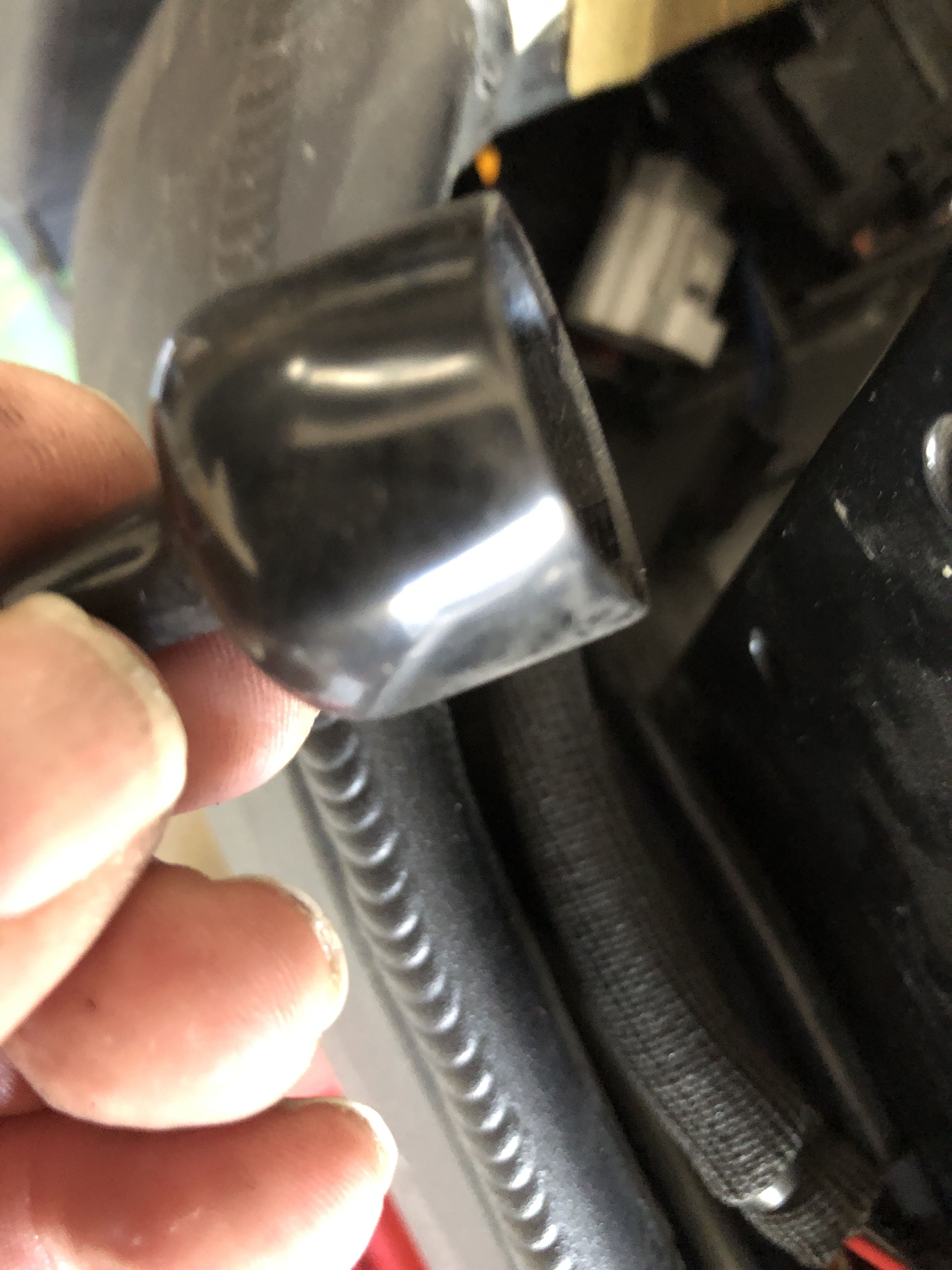 Hier die Gummimütze abgewurstelt, war ja nicht viel Platz in der Lücke zwischen Zusatzbatterie und Rahmen, und dem jetzt offenen Sumitomo im Hintergrund: