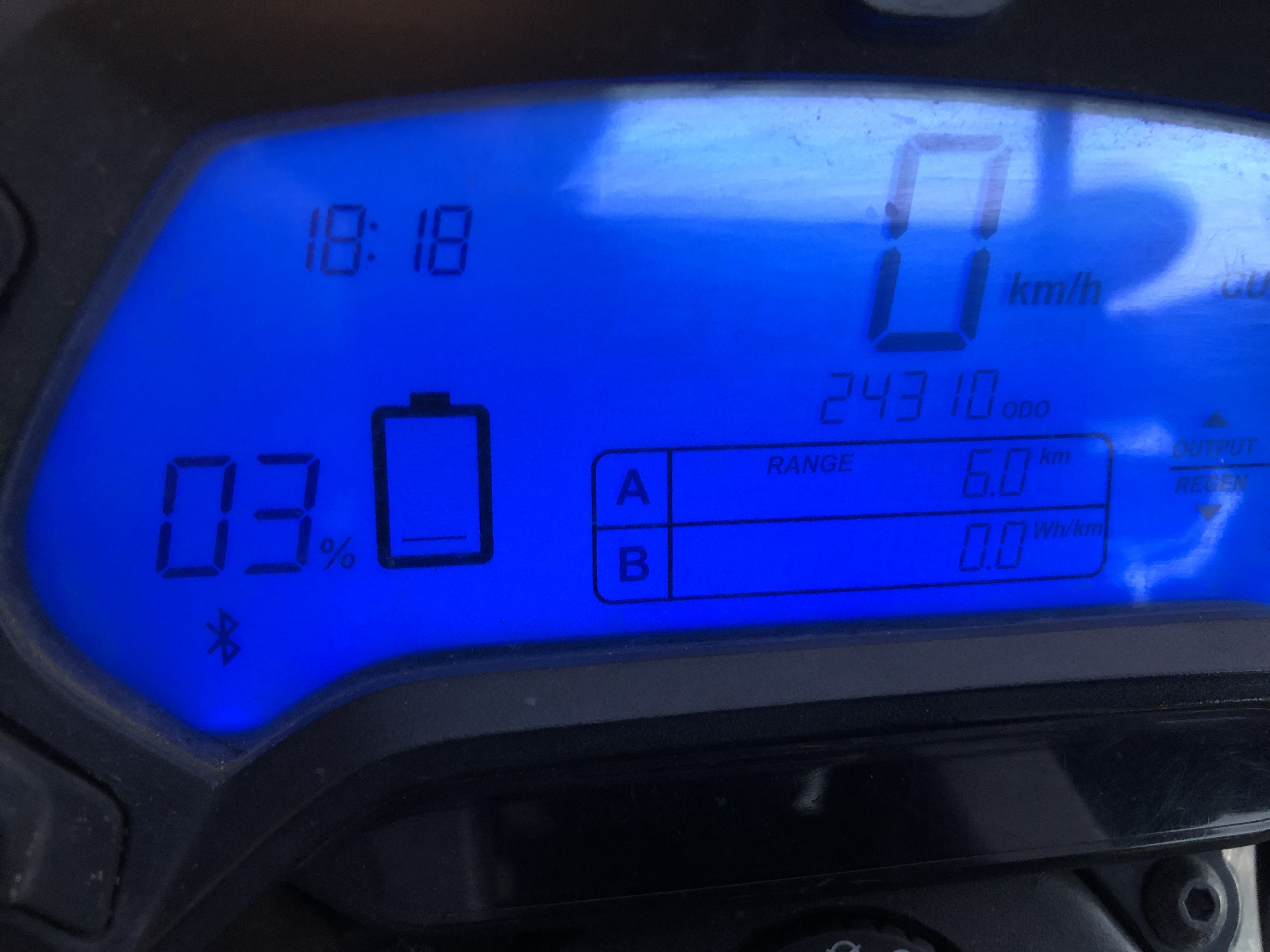 Von 139km/h Vollstrom mit maximalem Verbrauch bis 90km/h im LKW Windschatten mit nur noch Strom nippen ist alles drin. Die 1,5km Restreichweitenanzeige war auch in etwa diesem Abstand zu meinem Ziel aufgepoppt, und hat sich nach der Heimkunft auch fluggs wieder auf 6km erhöht