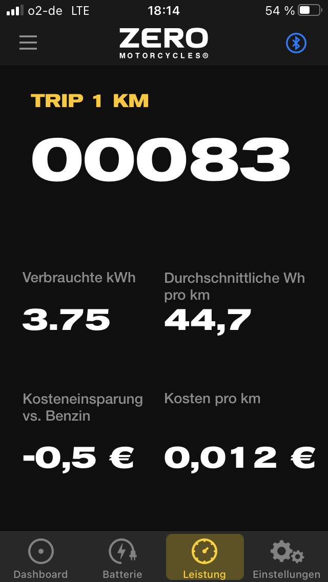 Was überhaupt nicht passt: die Zero App behauptete von der gestrigen Fahrt: Das stimmt hinten und vorne nicht mit dem Verbrauch