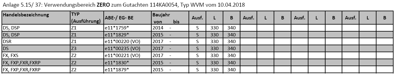 beim MRA Aufsatz, (den Du ja auch hast), sind gefühlt 100 Motorräder erlaubt, aber Zero ist garnicht