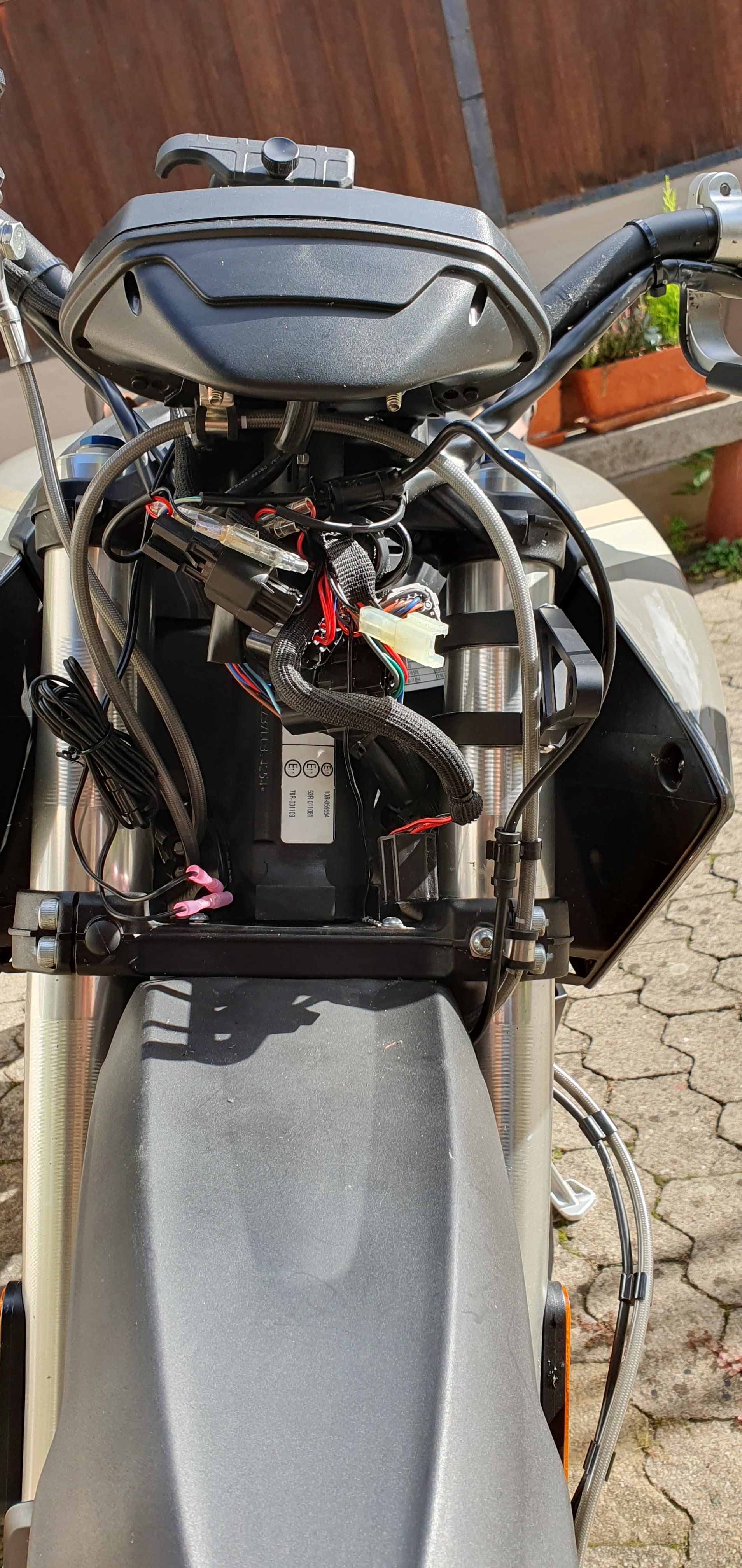 wenn man mal das ganze Plastikgedöns abnimmt, kommt dann doch ganz schön viel Kabelgezuchtel zum Vorschein, das nicht viel Platz für wuchtige Scheinwerfer lässt ... also, entwirren und neu sortieren ...