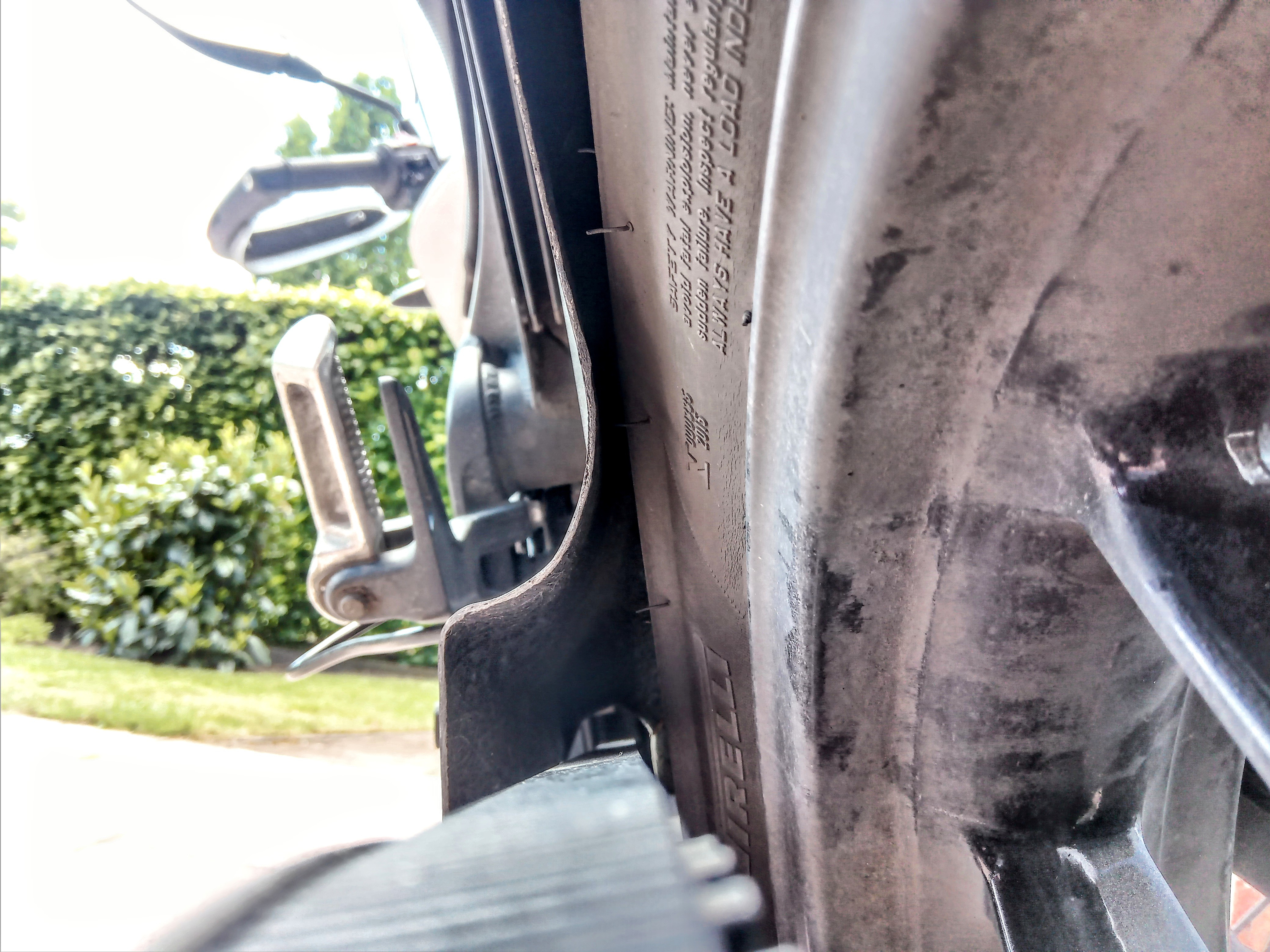 Und ja, es sind wüste Verwerfungen, die zum Aufschlagen des Spritzschutzes auf den Hinterreifen führen. Doch leider habe ich mehrere solche Stellen, die über die gesamte Fahrbahnbreite gehen, wo es nur die Wahl gibt zwischen Pest und Cholera. Der Spritzschutz schlägt da immer ans Hinterrad...