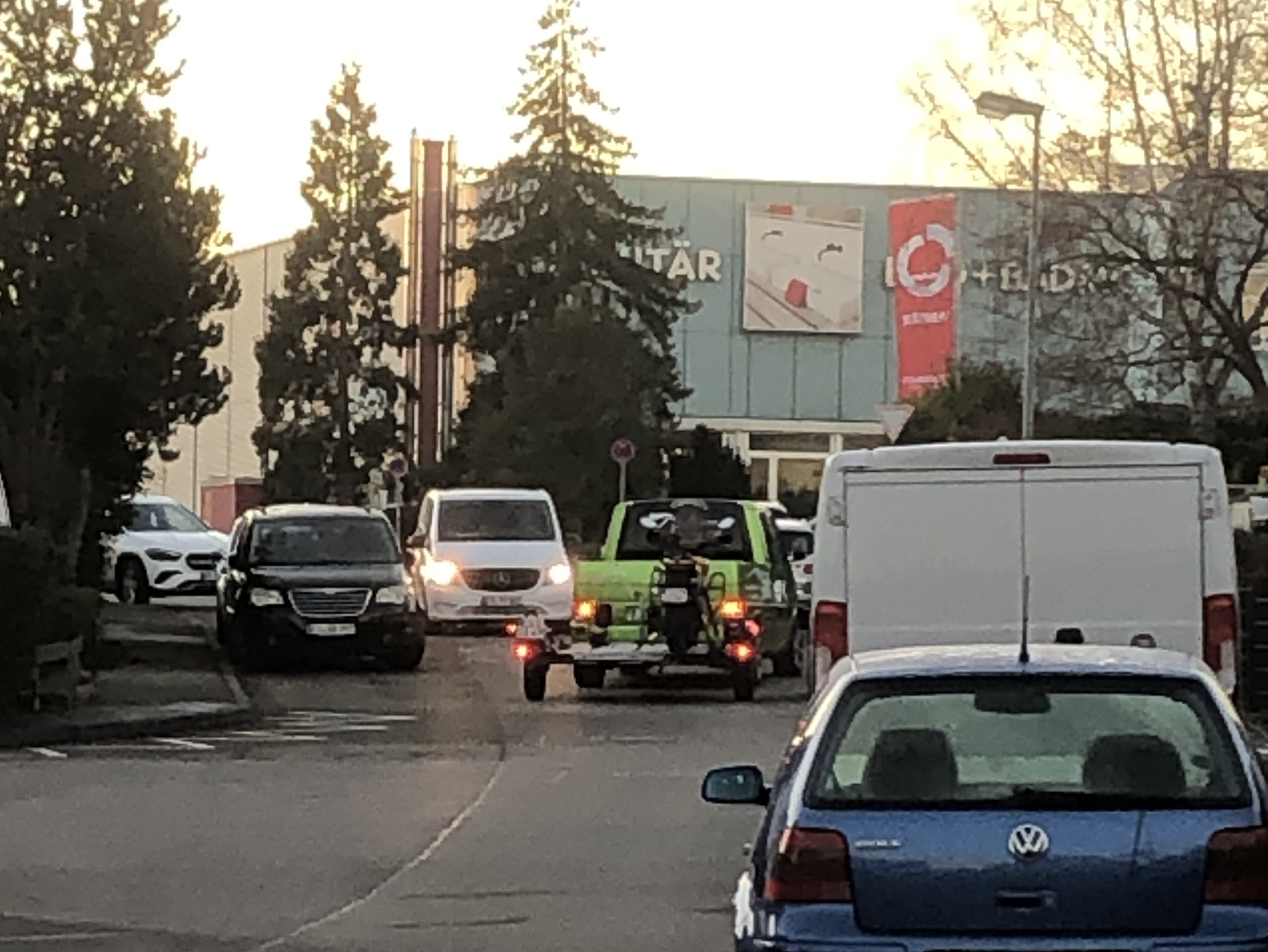 Da fährt sie hin, hinterm grünen VW-Doppelkabine von Zi-emobility. Ich bin sher gespannt, ob die elektrischen Gremlins im ABS-System und im HV-Kreis gefunden und abgestellt werden können.