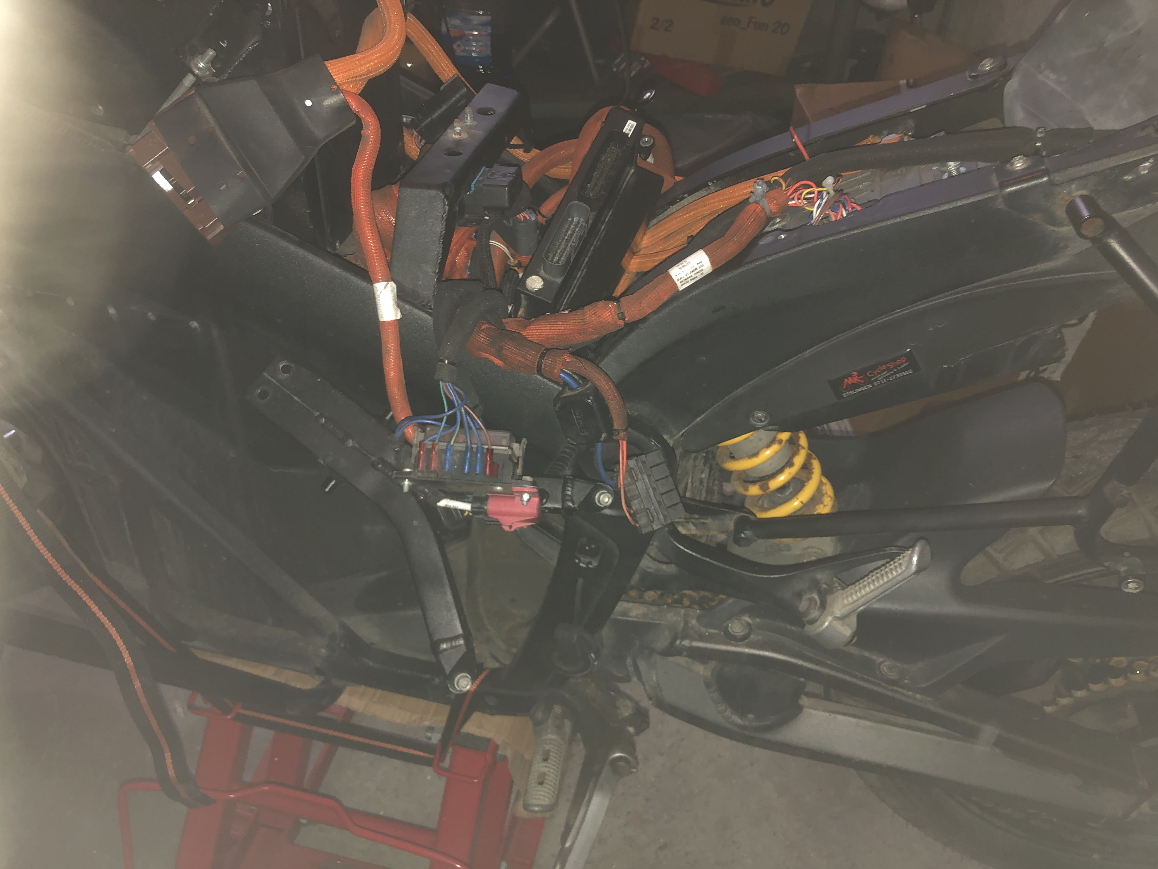 Nach einem Tag Pause ging es heute zwar anstrengend, aber zügiger voran, so dass ich auch den Funktionstest mit dem neuen DC/DC Wandler von DMC machen, und es tut tatsächlich wieder alles, obwohl die HV-Elektrik komplett zerlegt war, und die LV Quelle erneuert wurde. Auch alles Laden bis zum möglichen Maximum mit 7,9kW! Nur weiß ich nimmer, ob auch mit dem vorigen Sevcon Wandler es Störungen im Garagenradio gab, wenn ich die Zero in der Garage angemacht habe. Denn JETZT ist das auf jeden Fall der Fall