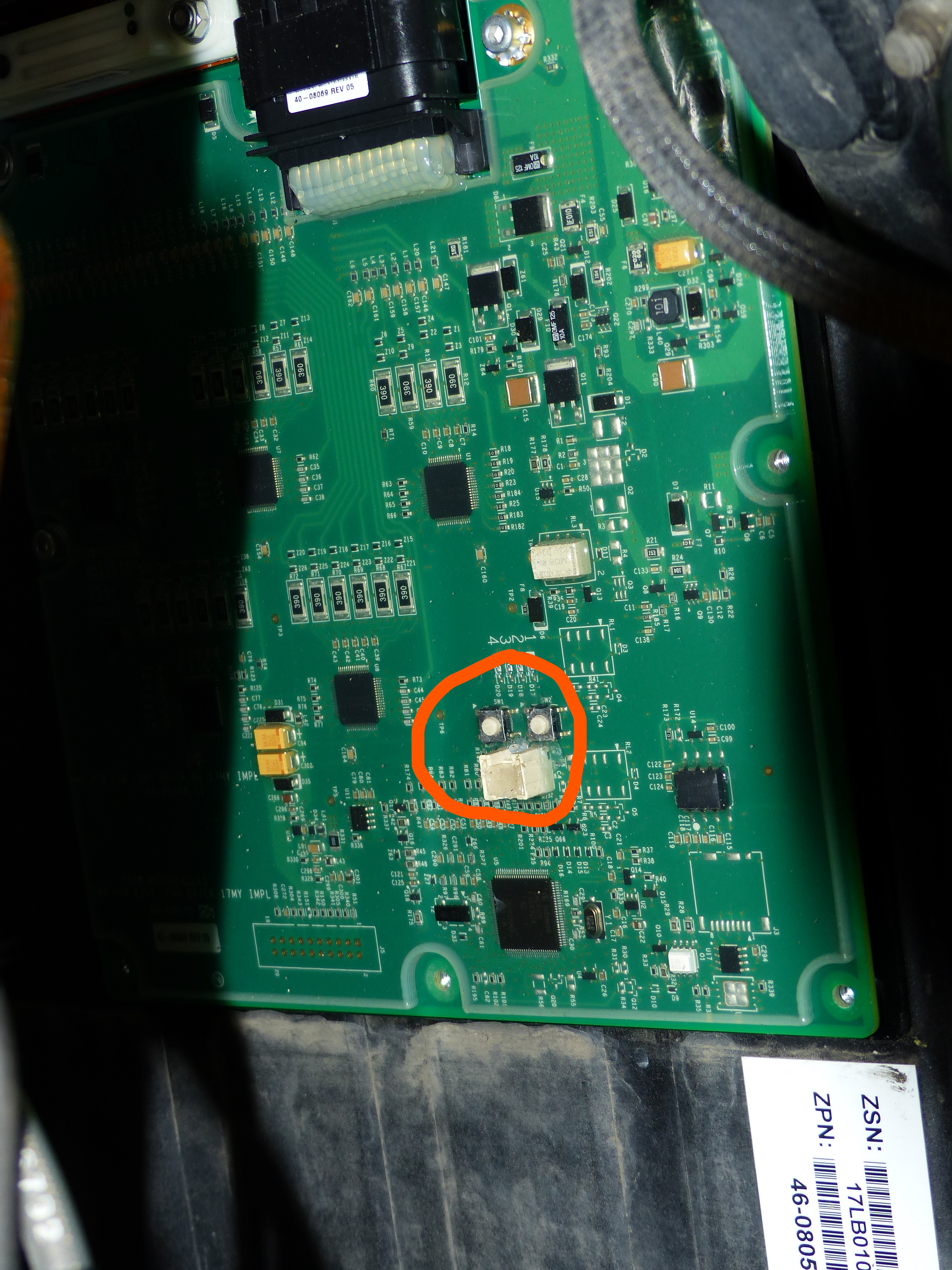 Worunter sich diese zwei Mikroschalter und der Stecker verbergen, hier auf der nackten (voll vergossenen) BMS Platine fotografiert, und ohne das sicherlich darüber verteilte Fett: