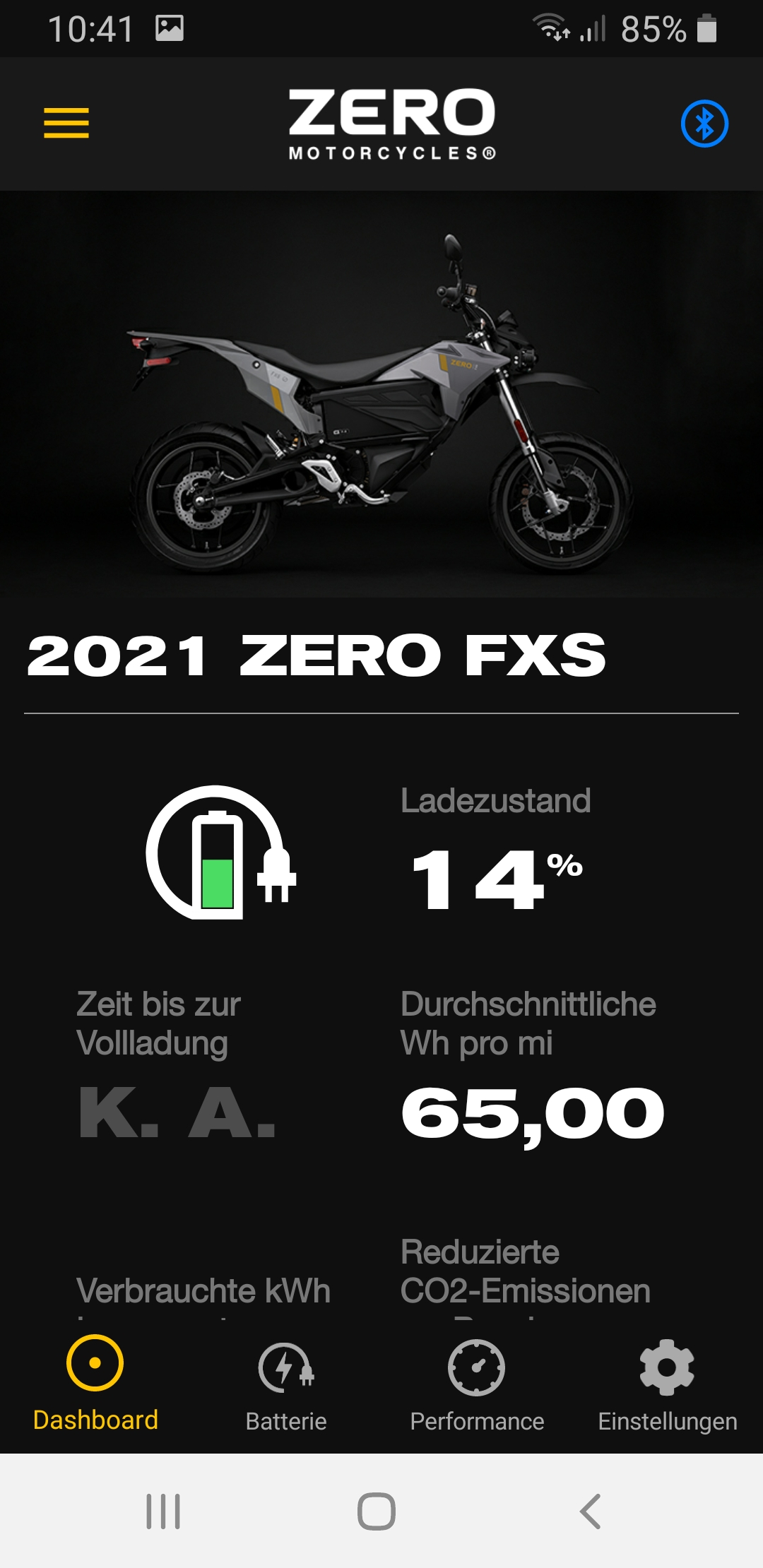 ich denke schon dass die App mit der Zero verbunden ist: Im Dashboard bekomme ich alle Infos vom Moped angezeigt. Siehe Bild oben 1. Beitrag.