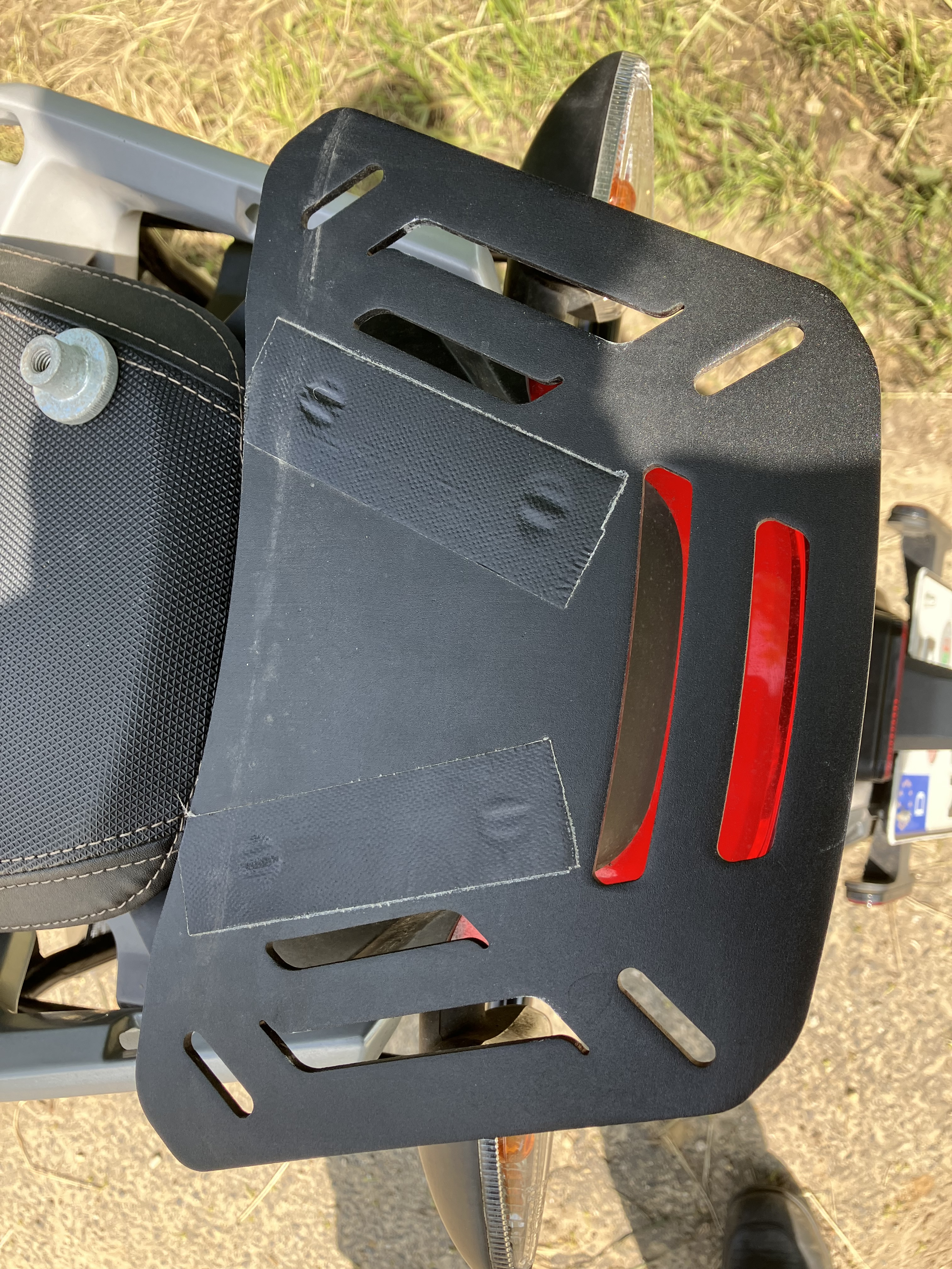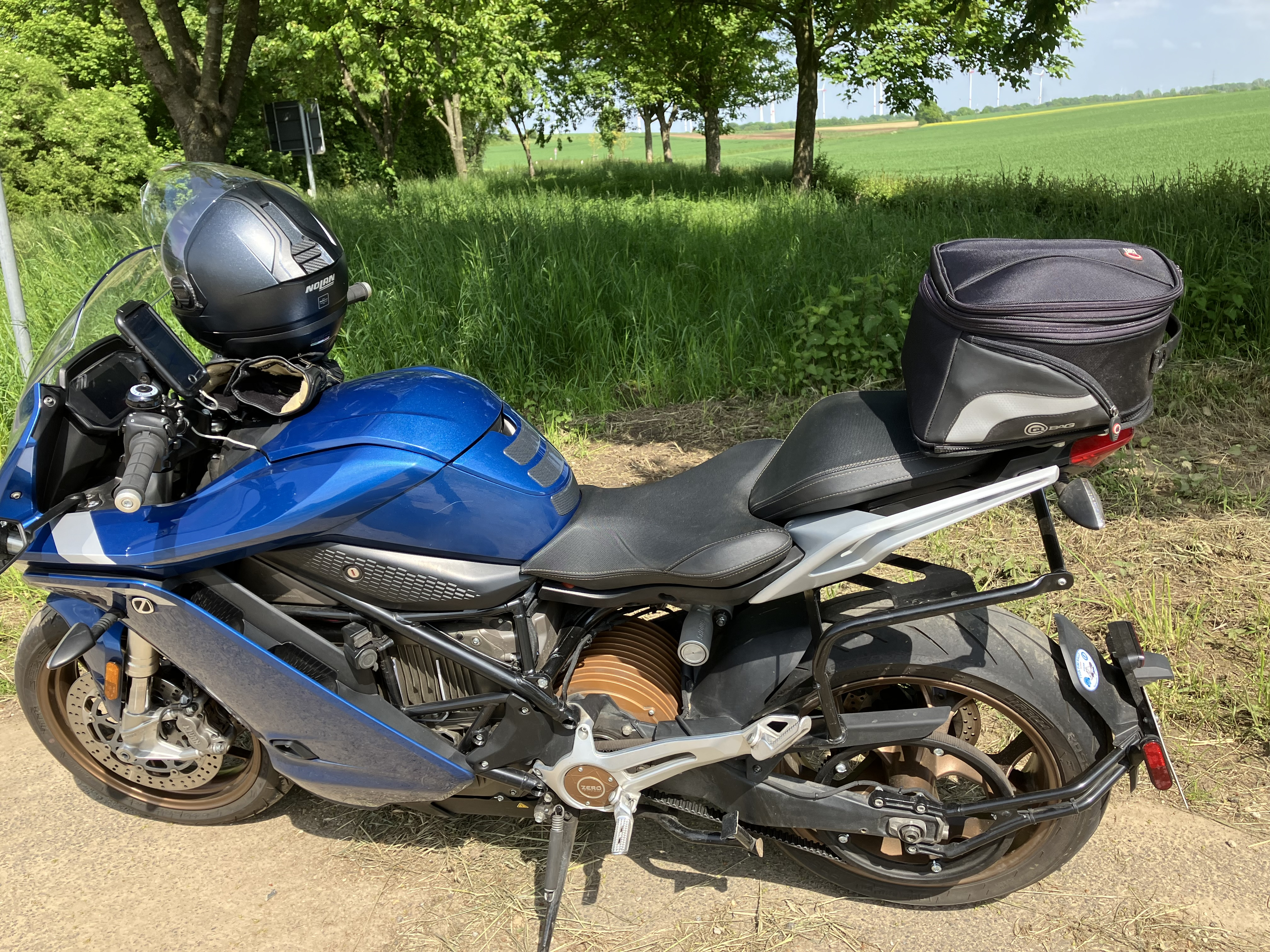 Apropo Zubehör. Ich finde eine Hecktasche unauffälliger als ein Topcase, hier meine Lösung für das Ladekabel bei der SR/S. Ohne Zugriff auf eine Laserschneidemaschine, wurde die Grundplatte für‘s Zero-Topcase benötigt und da eine Hecktasche von QBag drauf gesetzt. Verstellbar in 2 Positionen. Solo oder 2up.