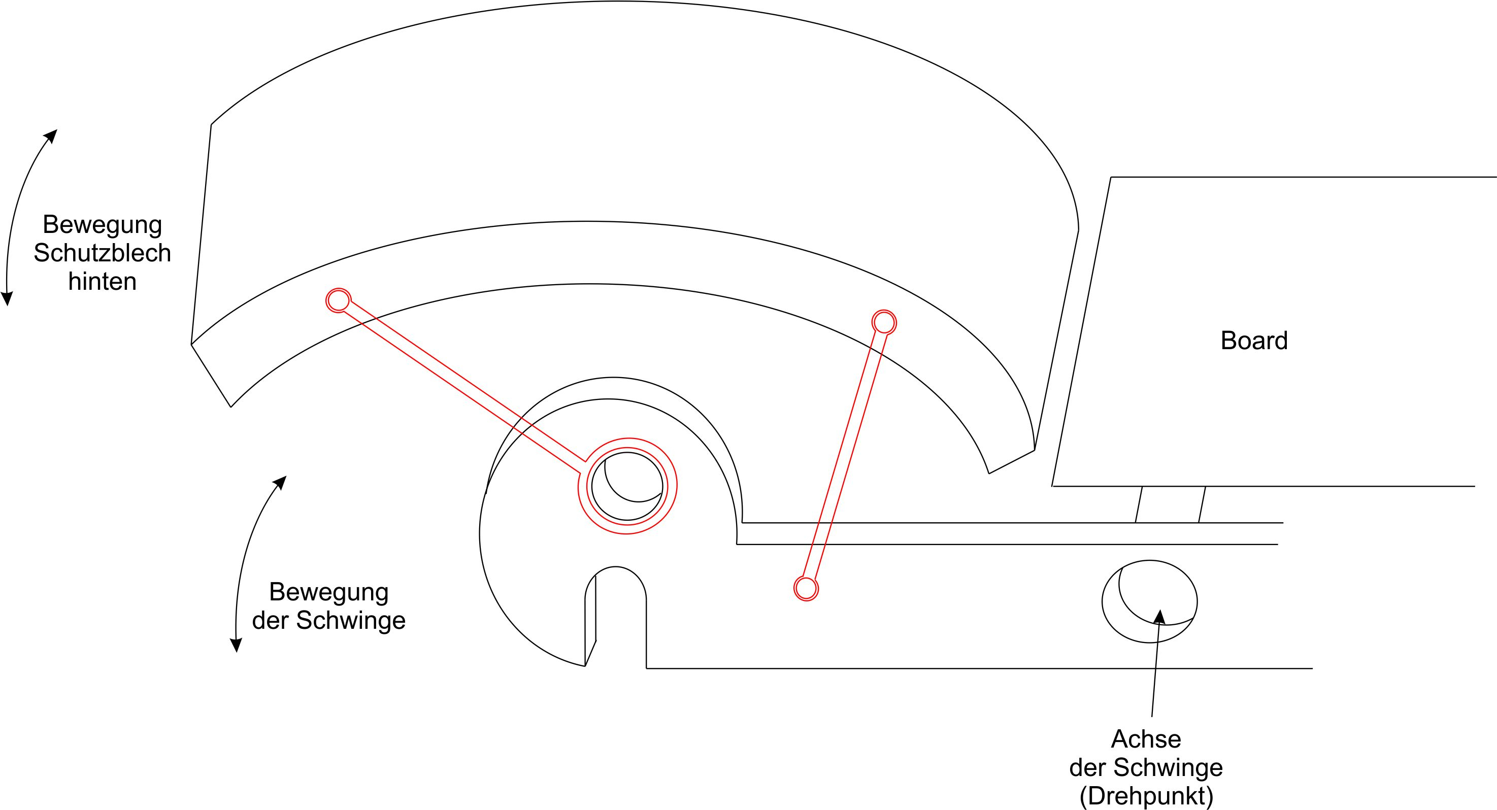 Ich denke das Schutzblech sollte komplett vom Board getrennt werden und direkt an der Hinterradschwinge befestigt werden.