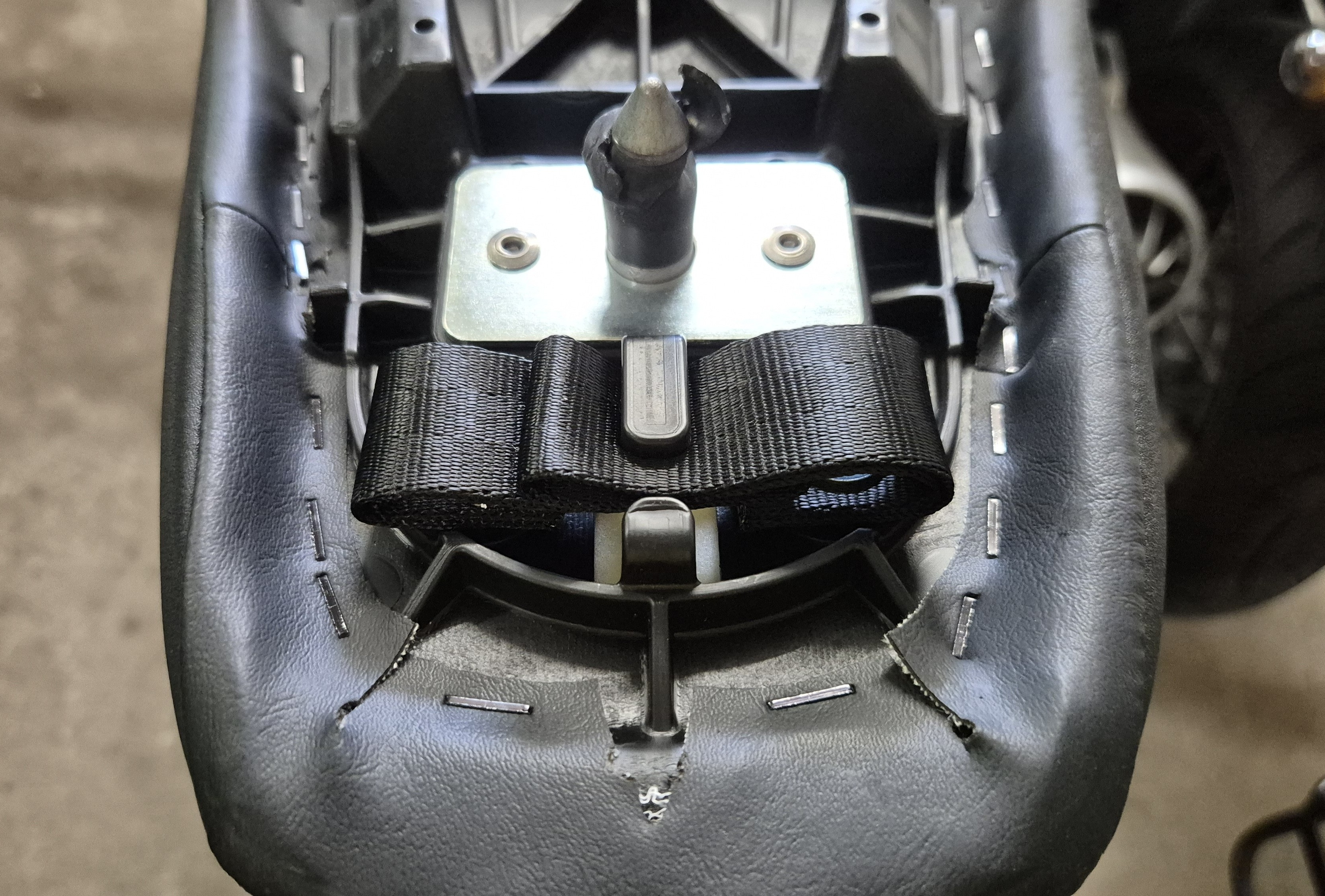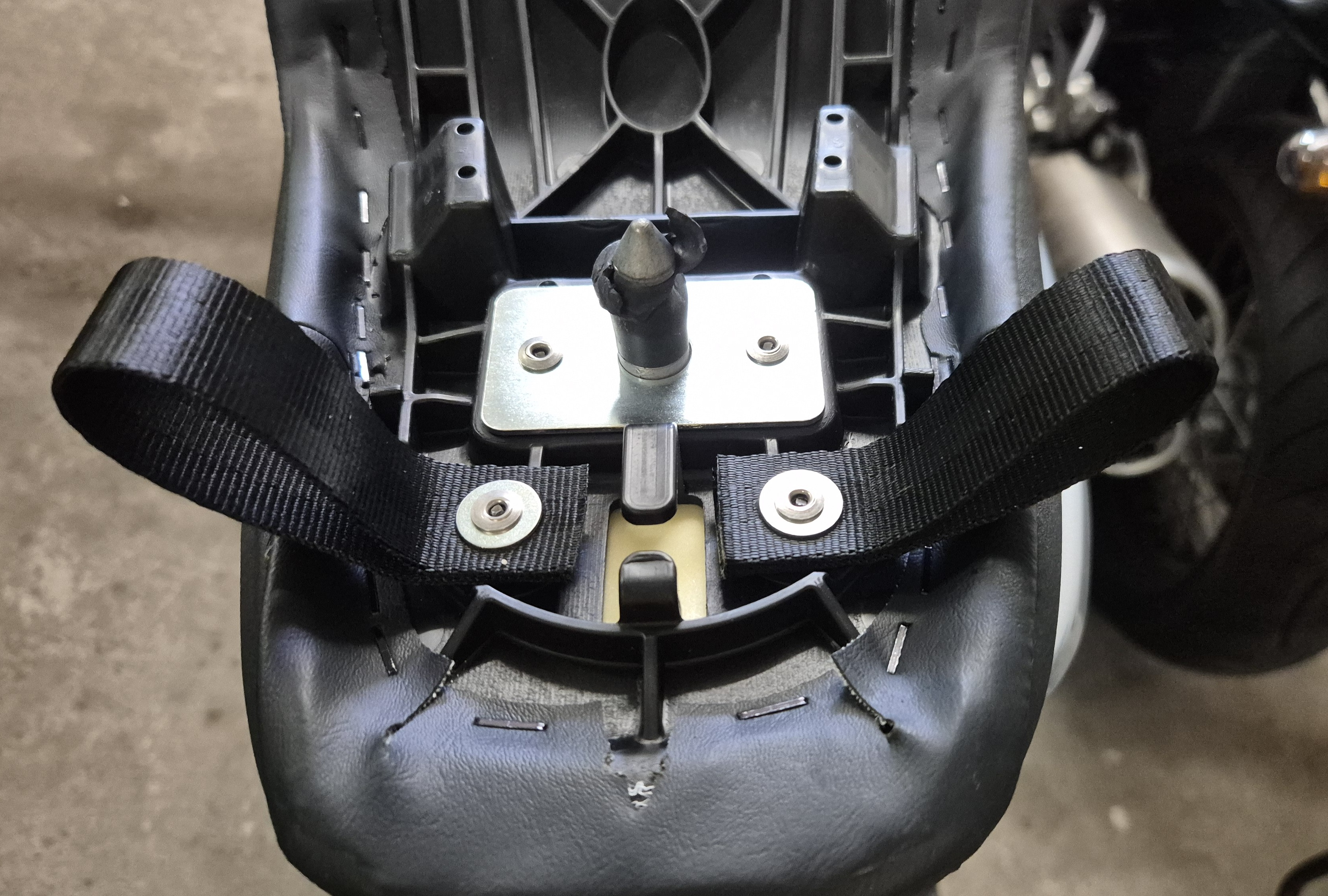 Unter dem Sitz gibt es ganz hinten sowas wie Gepäckösen/-schlaufen.