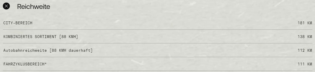 Kombinierte Reichweiten ist nicht 158km, sondern: