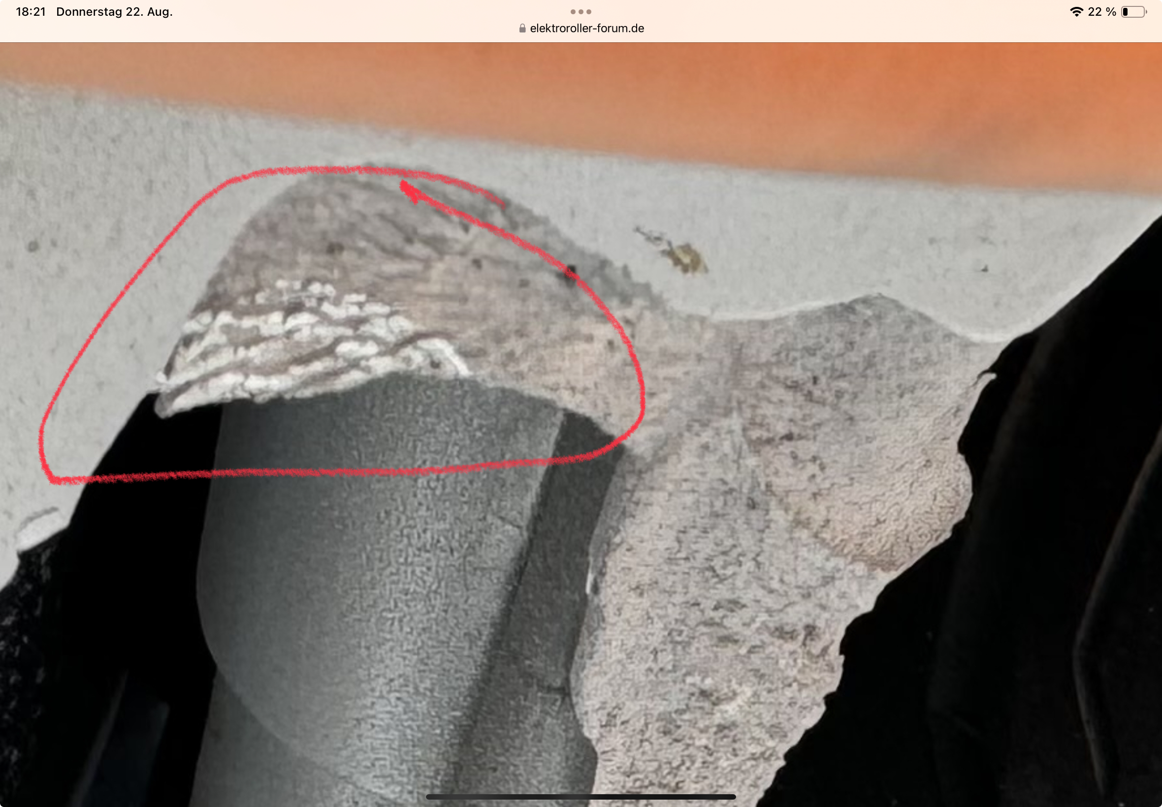Ich war genervt, dass nach einigen Jahren Ganzjahresfahren wegen dem winterlichen Salz mein Hauptständer am eSprit Fury schlicht abgerostet war, aber an einem recht neuen premium E-Roller solcher Gewaltbruch in einem Alu-Rahmenteil ist ja nur noch erschreckend, denn was passiert, wenn da noch mehr zerbricht?!
