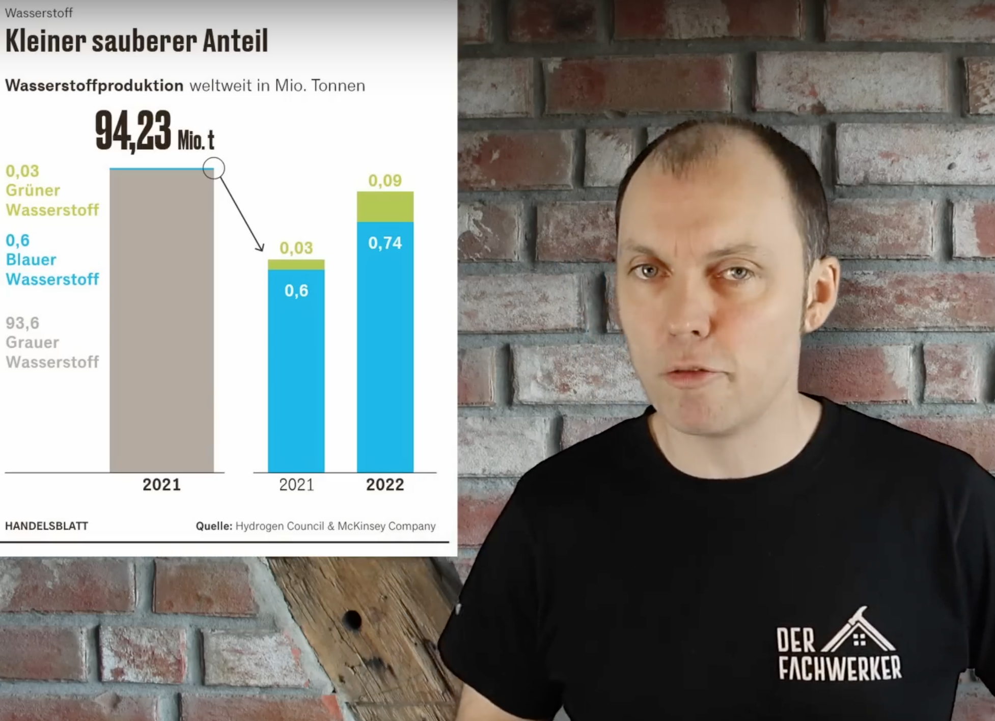 Der Autor des Videos hat einen entscheidenden Fehler gemacht - und den aktuellen deutschen Strommix für seine Berechnungen her genommen. Das ist unseriös. Wasserstoff lässt sich fast klimaneutral aus Ökostrom herstellen.