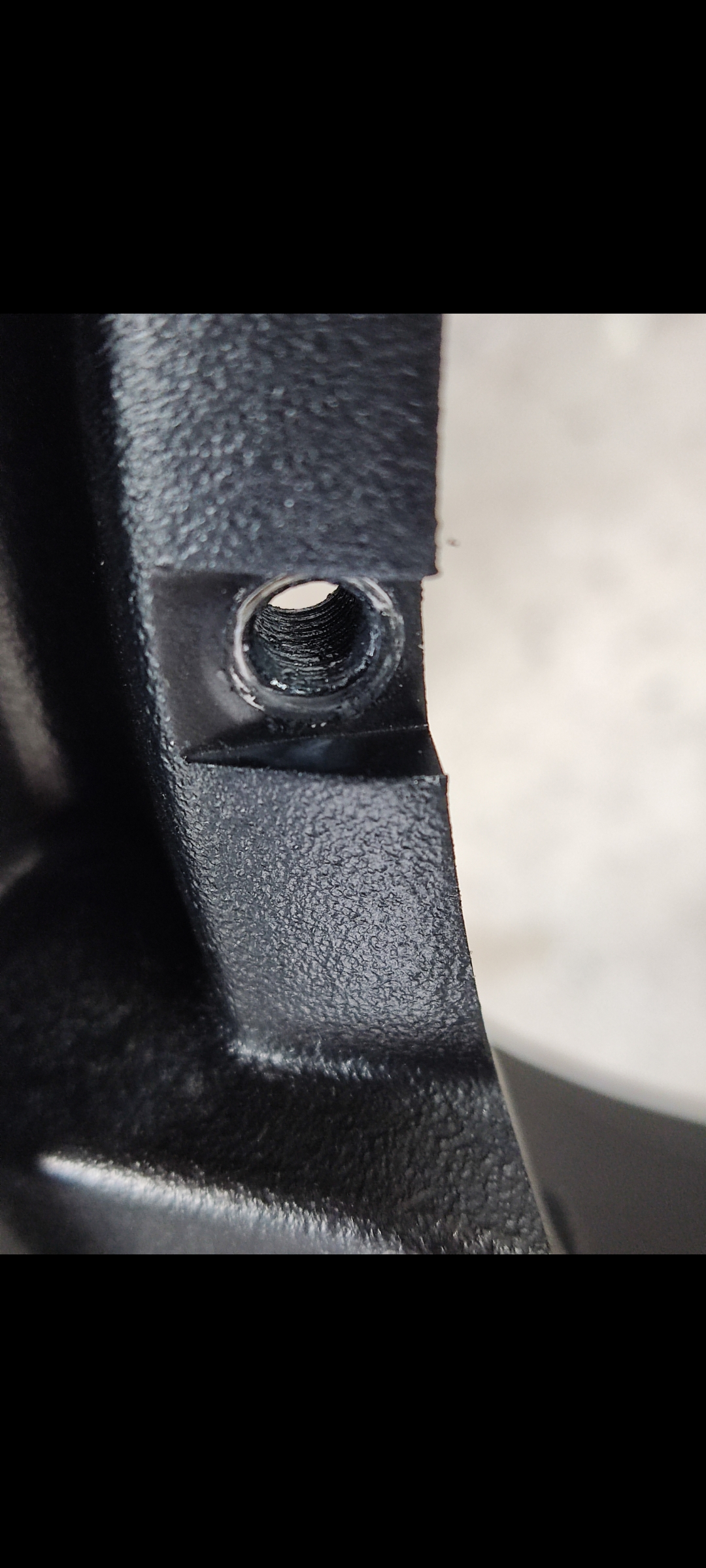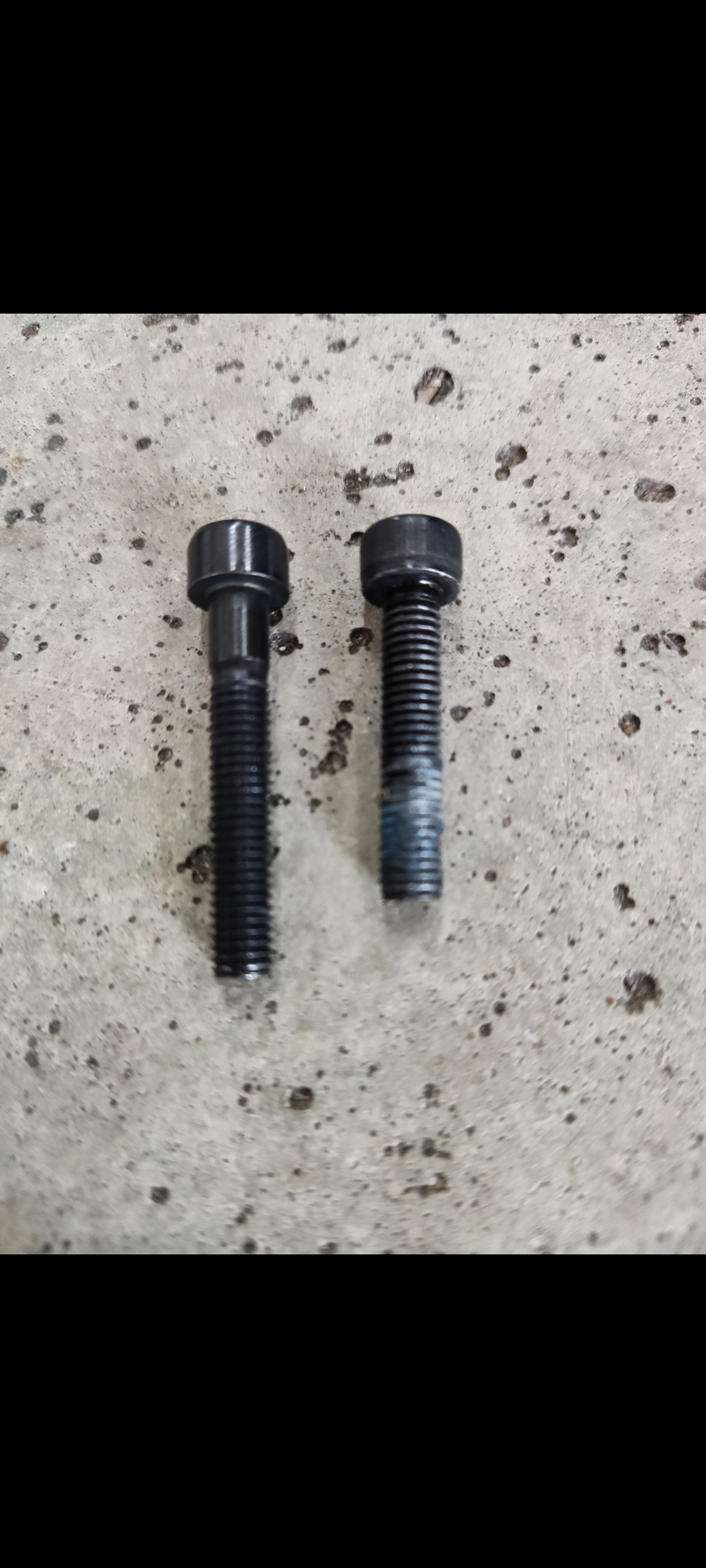 Hier mal eine Foto der Problematik und meine neuen Schrauben. Ich habe auch direkt mal die Gewinde gereinigt Silence hat die Späne nicht alle entfernt vom bohren und Gewinde schneiden. In der Felge bzw. der Bohrung sollten keine Gewindeabdrücke sein.