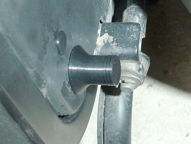 Statt der zuerst angefeilten Schraube ist nun eine normale M8 im Einsatz, die einwandfrei in der präparierten Radschraube verschwindet. Ab morgen dann hoffentlich das Schloss.