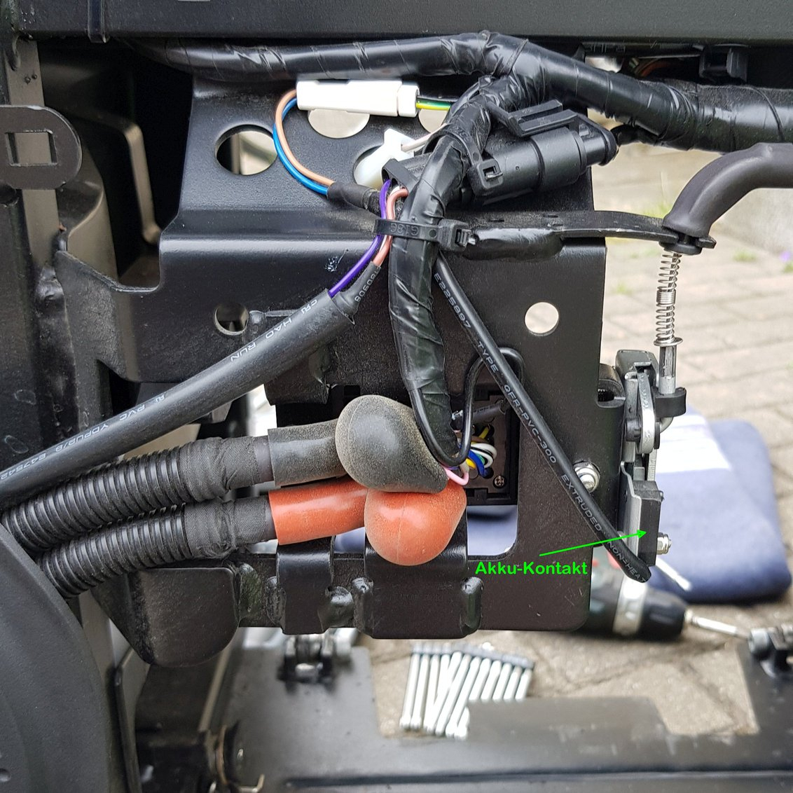 Der Fehler bestand weiterhin (Batt out) :roll: ich überlegte dann die ganze Nacht was es noch sein könnte. Da er ja fuhr, wenn ich den Akku oft genug rausnahm und wieder einsetzte. Zumindest bis zur ersten Bodenwelle und wieder die Meldung kam. Also dachte ich, es muss ja in der Nähe einen Sensor geben der den Befehl gibt "Ja der Akku ist eingerastet".