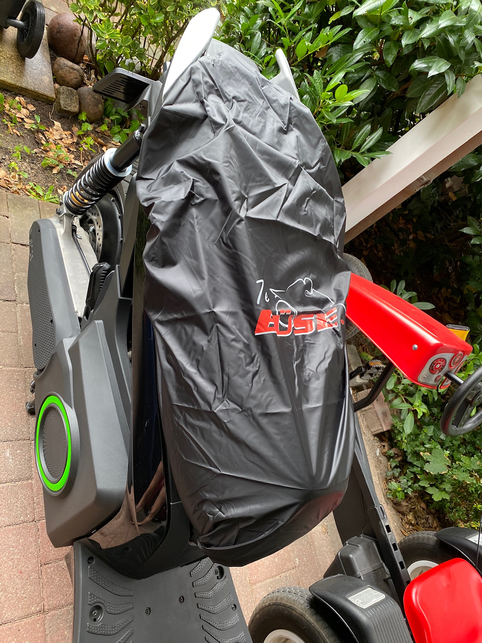 b) Der Roller wirkt mit kleinem Schild wesentlich wendiger im Handling als mit dem großen. Ich frage mich, ob das nur Einbildung ist oder mehr dahintersteckt. Der Eindruck meiner Frau ist genau der gleiche, ohne dass wir vor unseren Fahrten darüber gesprochen hatten. Sie ist auch mit beiden Schilden gefahren.