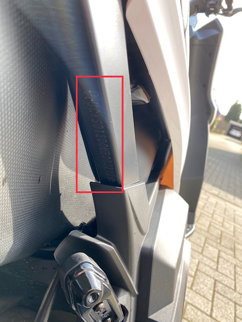 Beim Mo soll die VIN laut App nur unter dem Sitz auf einem Aufkleber sein.
