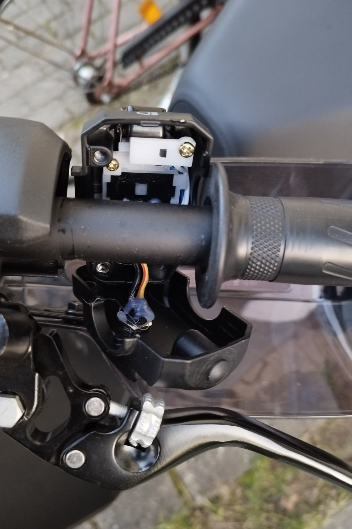 So, beim Montieren des Spiegel-Umrüstsets (Vorsicht, die sind quasi aus Butter, "nach fest kommt ab") habe ich den linken Lenkergriffschalter mal auseinandergenommen: