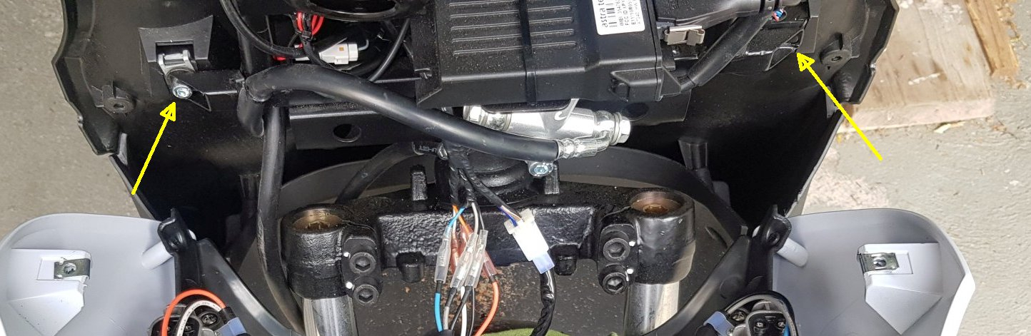 ist offtopic, aber meinst Du diese beiden Schrauben? Die rechte fehlte bei mir auch. Ich habe einen Roller aus einer ganzen Charge mit verzogenen Radhausverkleidungen, grauenhafte Spaltmaße. Nachdem ich die nebst Klammer ergänzt hatte, waren die Spaltmaße noch größer.