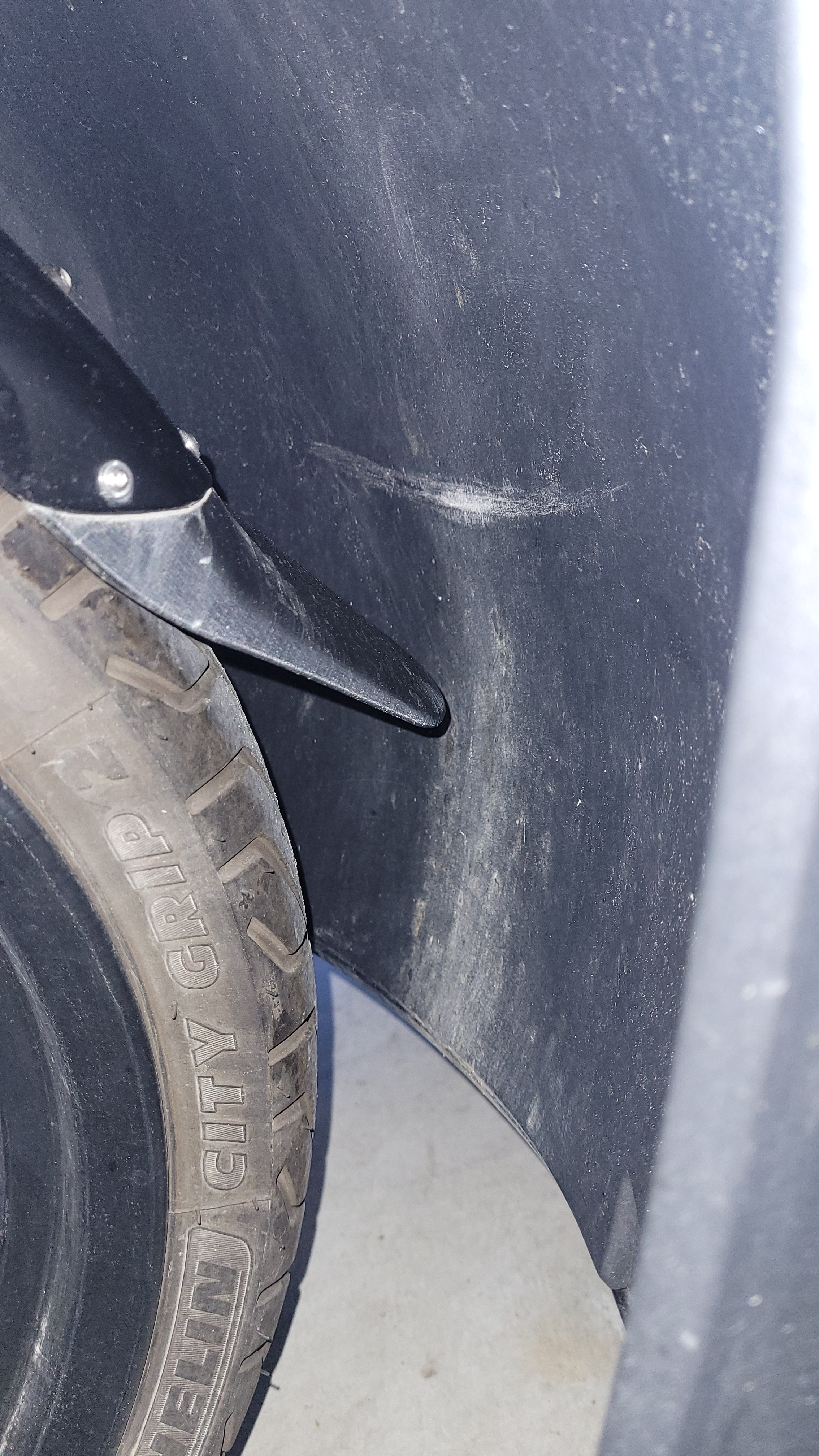 Alle, die diesen oder einen ähnlichen Spritzschutz verwenden, sollten ihn unbedingt auf Freigängigkeit unter allen Fahrbedingungen kontrollieren!