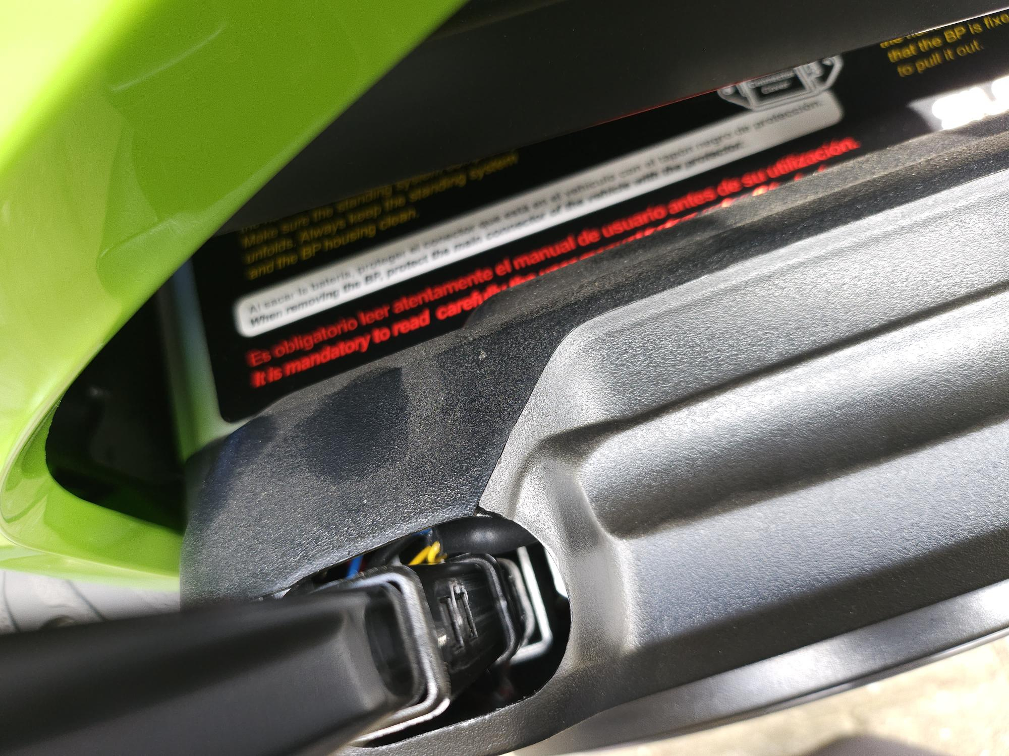 Ich würde da auch Entwarnung geben. Die Verkabelung auf der Seite des ausziehbaren Griffes hat zwar auch einen 230V-Verbinder, aber der ist mit wasserdichten Steckverbindern ausgeführt (wie auch der Connector für die Ladebuchse rechts unter dem Sitz) und der EIngang zum Netzteil zusätzlich abgedichtet, dann gibt es noch den Ausgang (60-V-Ebene) und die Verkabelung des Leuchtrings mit maximal 5 Volt. Wie Nobelhobel schon sagte: Das wird beim Laden regelmäßig trockengeheizt.