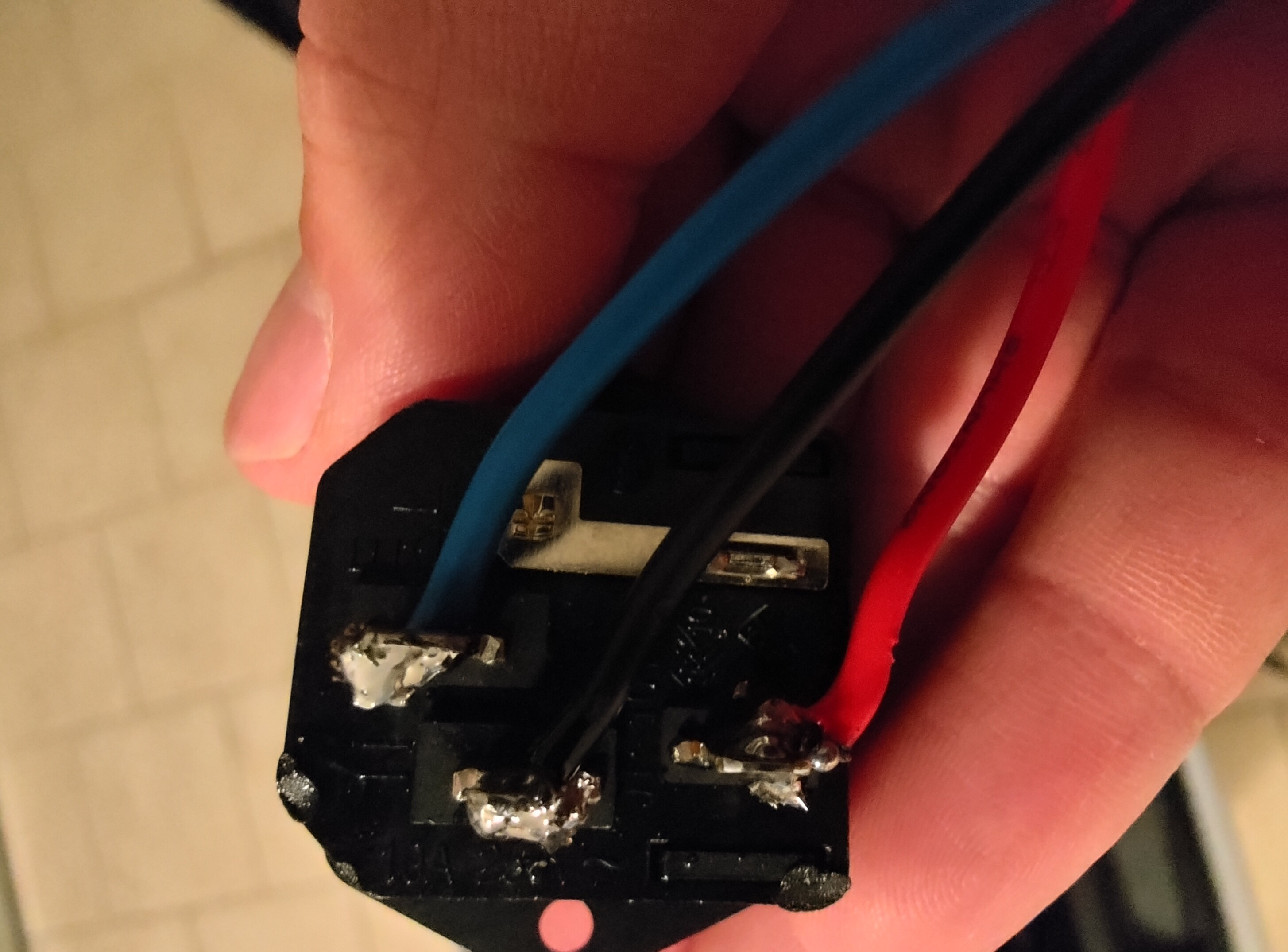 Kontakt des Netzsteckers (2. Foto von vorne mir in meiner Antwort) verbunden wird. Es kann bei Dir ja doch eine andere Farbe sein am Amazon-kabel Mitte.