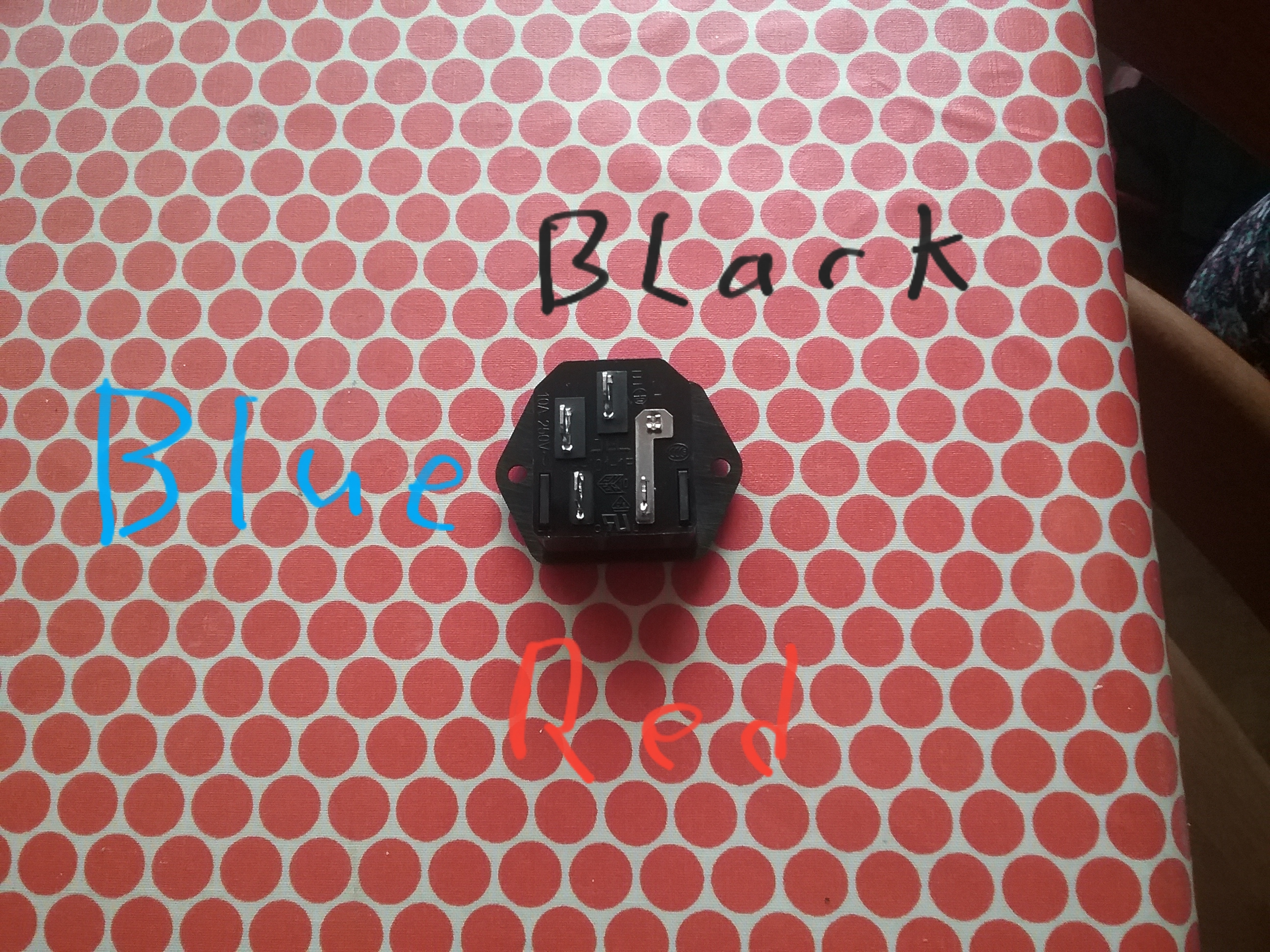 Die Mitte des wasserdichten Steckers muss an den Schutzleiter (linker Anschluss auf Bild) der ist hier Schwarz und ist links an N/L!