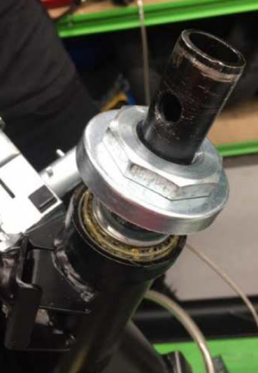 Entgegen einiger Nachrichten hier, konnte ich das Knacken jedoch nicht durch Lösen, sondern durch Nachziehen der Muttern beseitigen. Die obere der beiden Muttern war bei mir gefühlt sehr locker angezogen. Das testete ich, noch bevor ich die Verschraubungen dann komplett löste, um richtig an die Lager zu kommen.