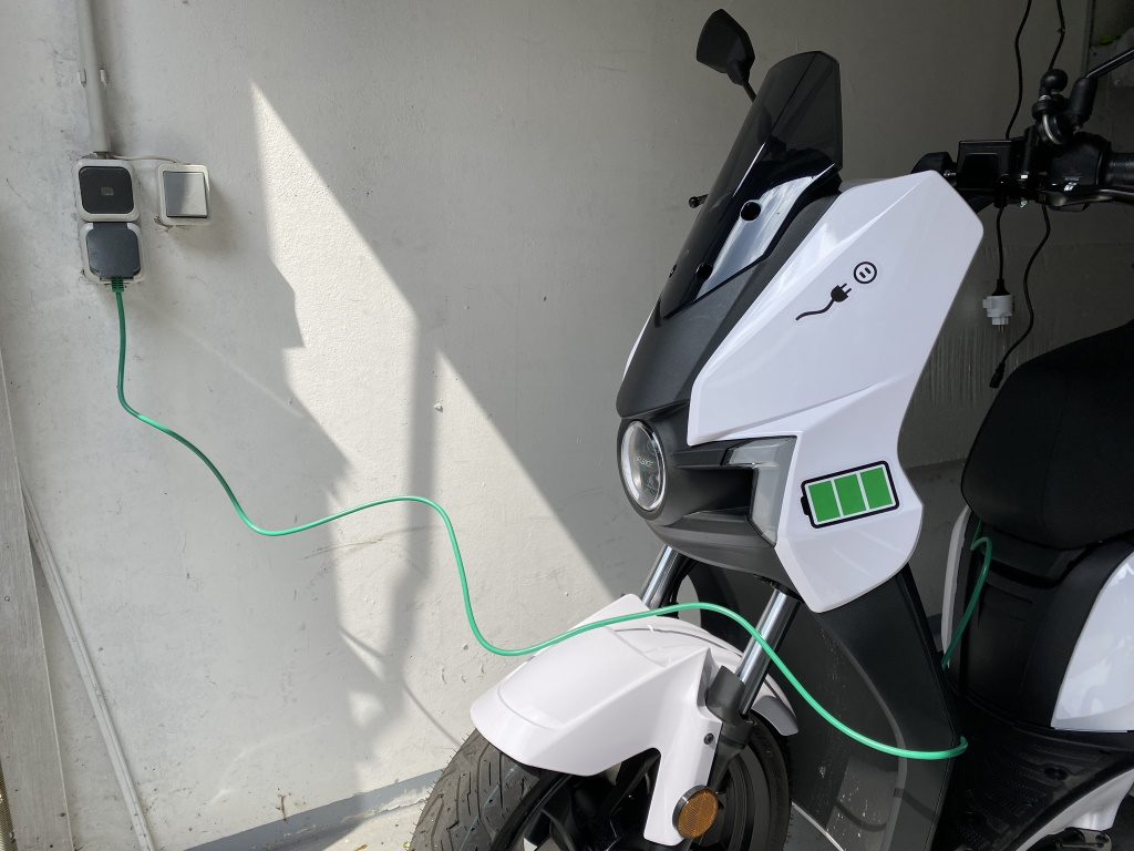 [Ironie an] Das grüne Ladekabel wirkt als Filter, der aus dem Strom-Mix an der Steckdose nur die Ökostrom-Anteile entnimmt. Ökostrom-Elektronen werden nämlich naturgemäß von der Farbe Grün angezogen. Ich glaube allerdings festgestellt zu haben, dass der Roller etwas an Leistung verloren hat. Ich nehme an, dass Ökostrom einfach nicht die gleiche Energie hat wie Atomstrom. [Ironie aus].