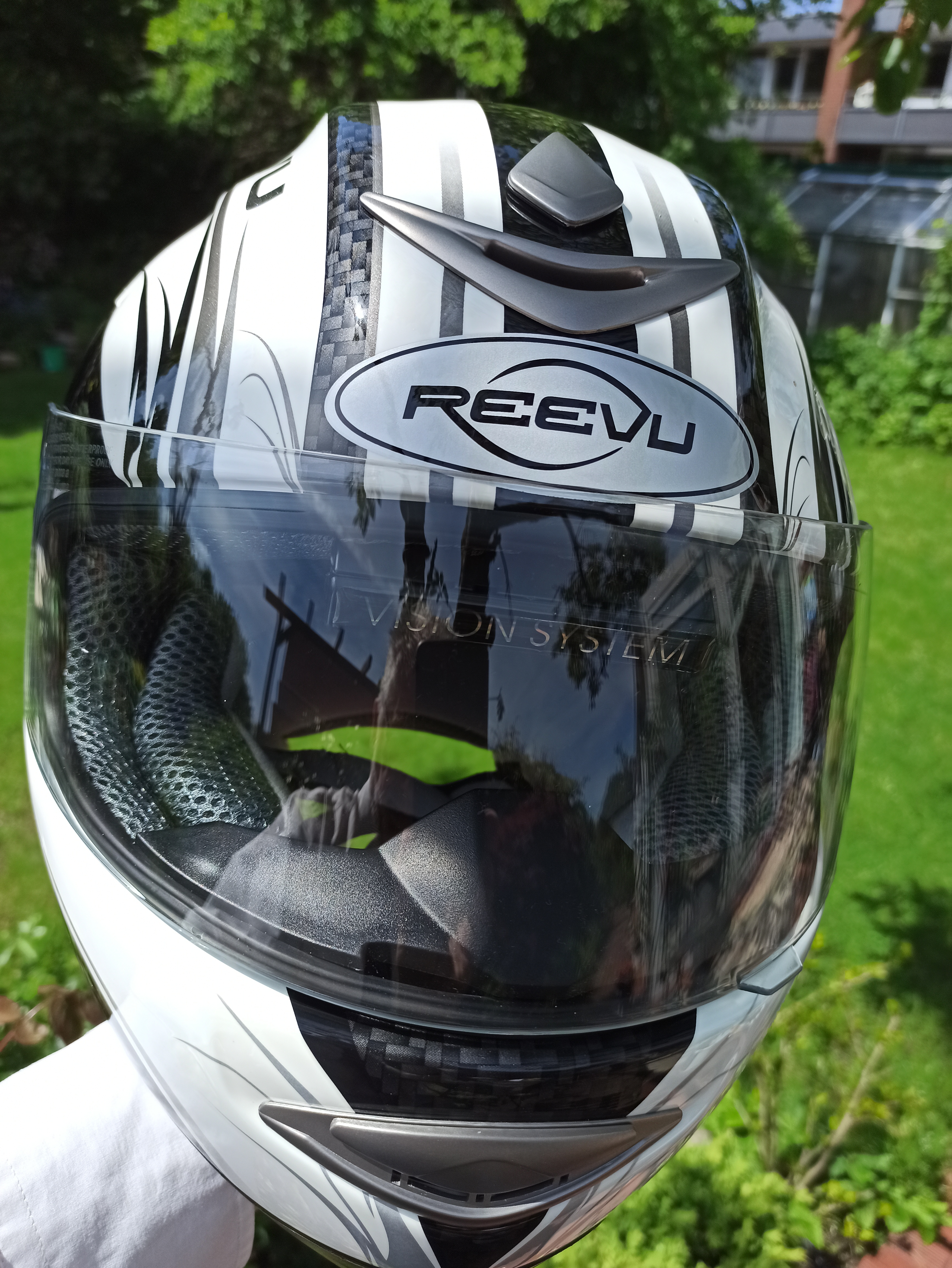 Hab mir den Reevu MSX1 geleistet und heute über eine 50 km Fahrt getestet - das ist ein Integralhelm mit eingebautem Rückspiegel. Funktioniert, wenn auch anfangs ein wenig gewöhnungsbedürftig. Man sieht den Rückraum ähnlich wie im Auto, allerdings abhängig von der Kopfhaltung. Tatsächlich bekommt man so mehr mit, was sich hinter einem so tut, aber das bedeutet auch, dass man eine neue Balance zwischen Seitenspiegel, Schulterblick und Rückspiegel benötigt. Daran muss ich noch ein wenig arbeiten. Habe bislang aber einen sehr guten Eindruck vom Helm und diesem System auf Basis von Fiberglas-Optik, der den Rückraum wie ein Periskop auf den Rückspiegel projiziert.