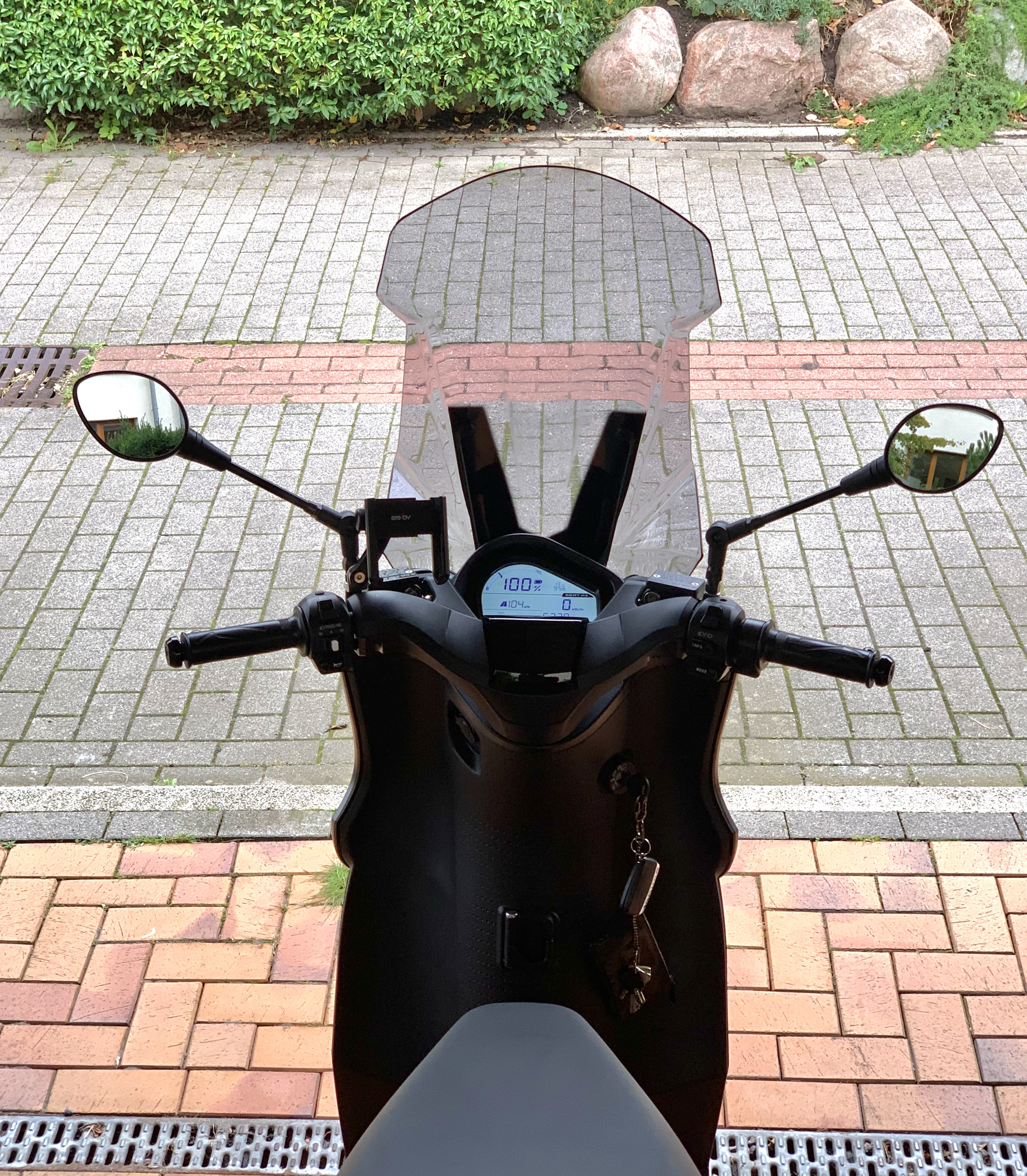 Interessanter Nebeneffekt: Die Sicht nach hinten hat sich deutlich verbessert, obwohl die Spiegelfläche kleiner ist. Liegt an der Form der Spiegel und an der Länge der Ausleger.