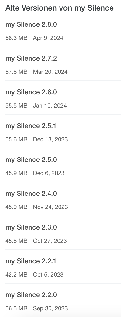 Das ist allesamt die neue, "rote" app ("my Silence"). Ob da eine ältere Version funktioniert, müsste man ausprobieren.