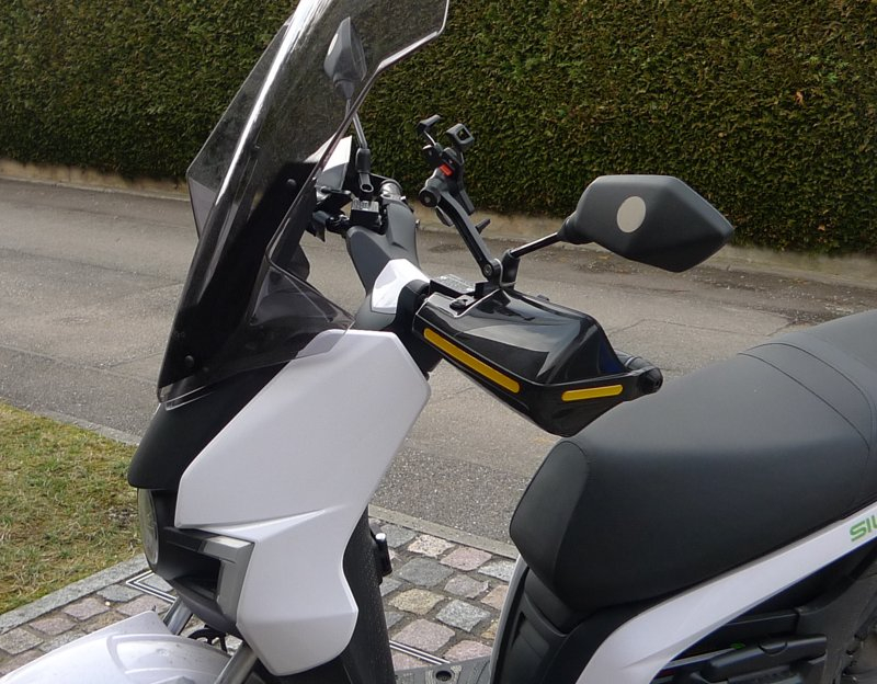 Falls es jemanden interessiert - diese Handprotektoren sind beim S01 mit hohem Windschild verwendbar. Gibt es auch von anderen Anbietern. Geliefert wurden sie bei mir allerdings in undurchsichtig schwarz, nicht in transparent grau. Zum niedrigen Windschild passen sie nicht; da müsste von den Protektoren etwas weggesägt werden.