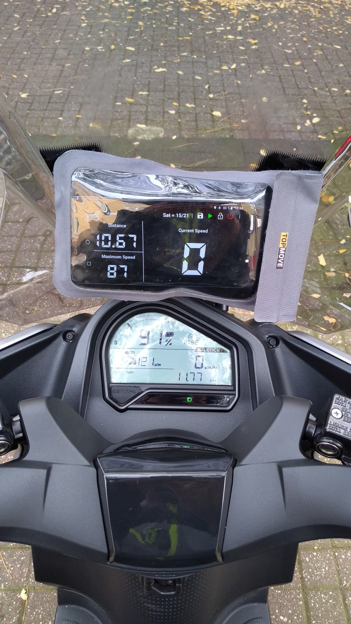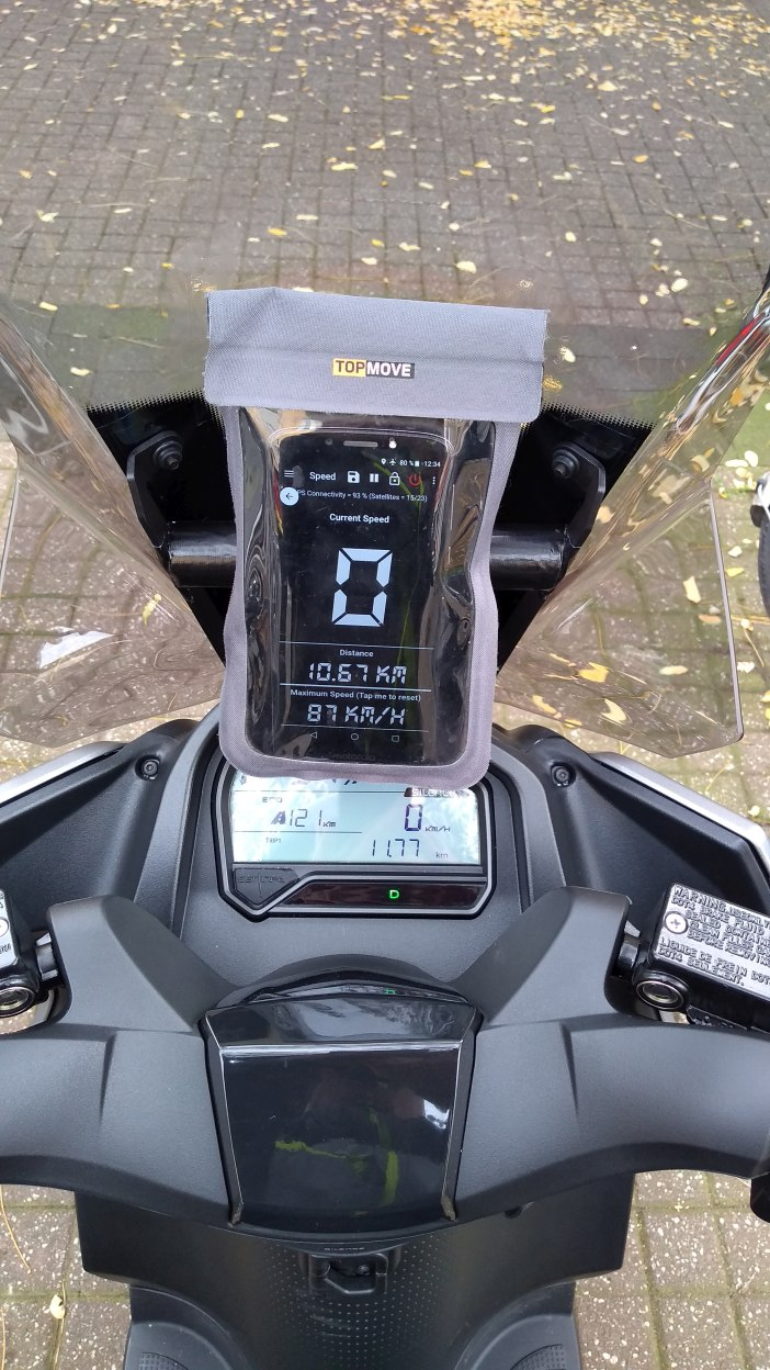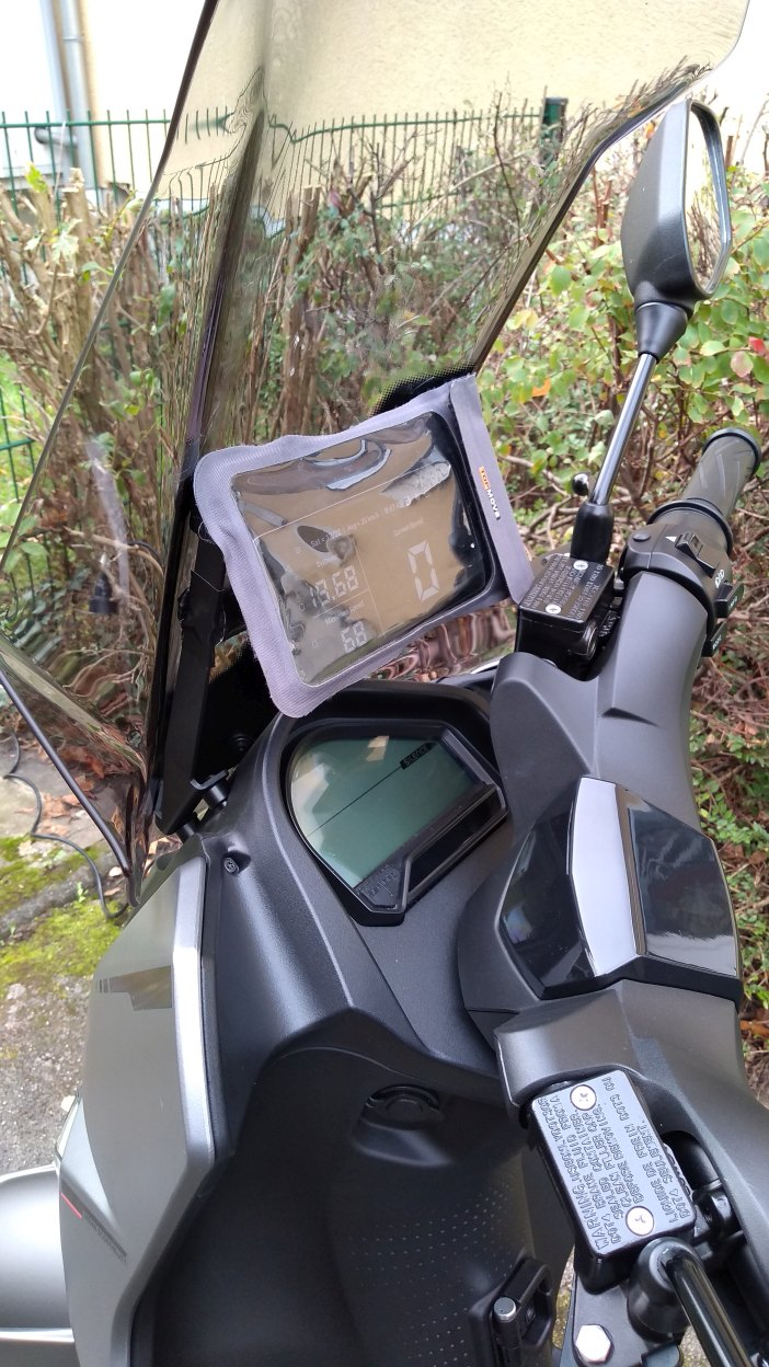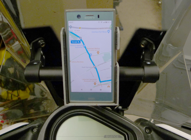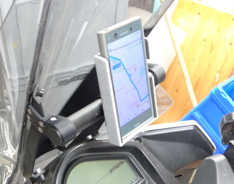 Das Handy / Navi ist optimal im Blickfeld, vor Regen und übermäßiger Sonnenbestrahlung geschützt. Hochformat und Querformat möglich. Die Stange ist mit den beiden Klemmen richtig stabil, bewegt sich kein bisschen. Keine Vibrationen. Ich denke, das ist die ideale Anbringung fürs Handy.