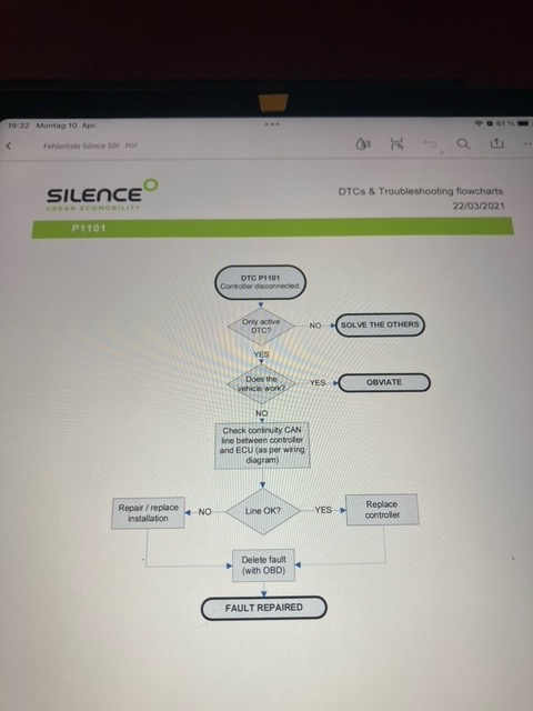 Habe mal mit meinem OBD-Tester den Fehlerspeicher ausgelesen. Es waren vier Codes gespeichert, keine “pending”. Im Fehlerspeicher waren P1010, P1101, P1102, P100F. “Übersetzen” konnte mein Tester die Codes nicht, da er eigentlich für Autos ist und ich beim Hersteller “other” ausgewählt habe. Nach dem Löschen war wie erwartet die Motorkontrollleuchte aus, nach einem erneuten Startversuch sind die Fehler P1010 und P1101 wiedergekommen. Gibt es für/von Silence eine OBD-Fehlerliste mit der man die P-Codes nachschlagen kann?