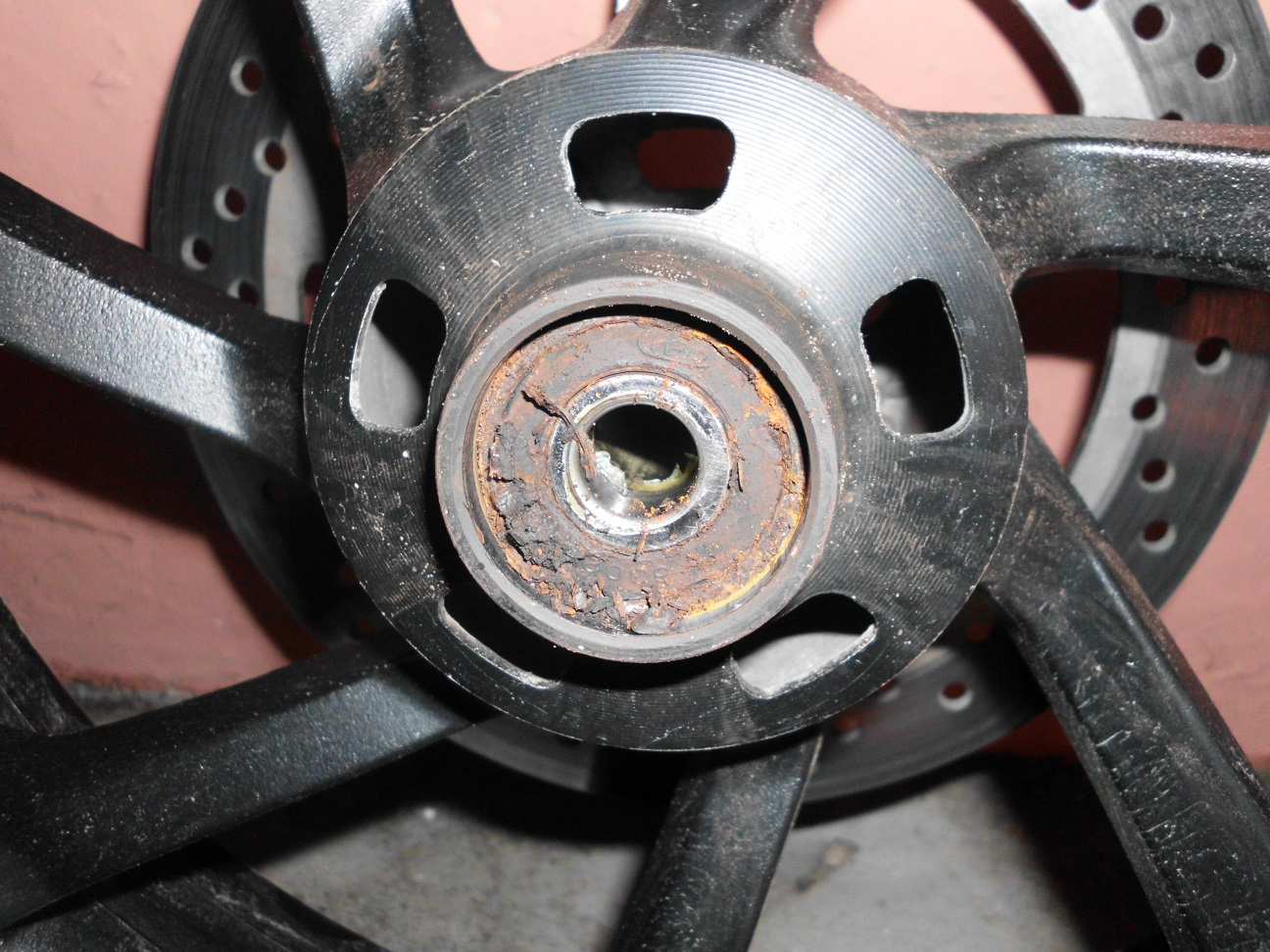 Die Abstandshülse bremsscheibenseitig hat eine ordentliche Kerbe ab Werk, sozusagen.