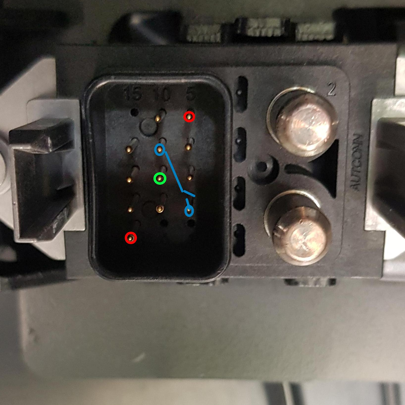 Demnach sehe ich im Steckverbinder rollerseitig (rechts unten ist Pin 1, links oben Pin 15, kann man schwach erkennen)