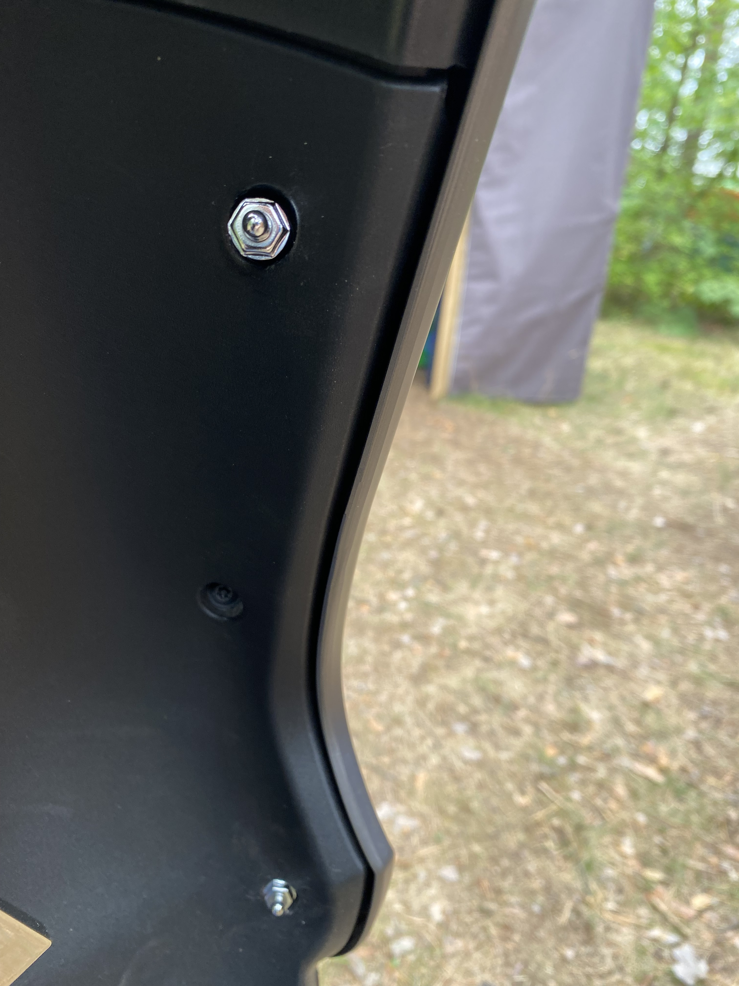 Ich überlege, ob sich die Befestigung auf Tenax-Druckknöpfe umbauen lässt. Dann könnte man auch diese recht behelfsmäßig aussehenden Gurte an der Unterseite weglassen. Man müsste dafür ein paar Löcher bohren, aber die Tenax- (oder Loxx-) Befestiger sehen gar nicht übel aus. Wer es nicht kennt, hier ist ein Video: https://www.youtube.com/watch?v=lHXDpxv1FxE