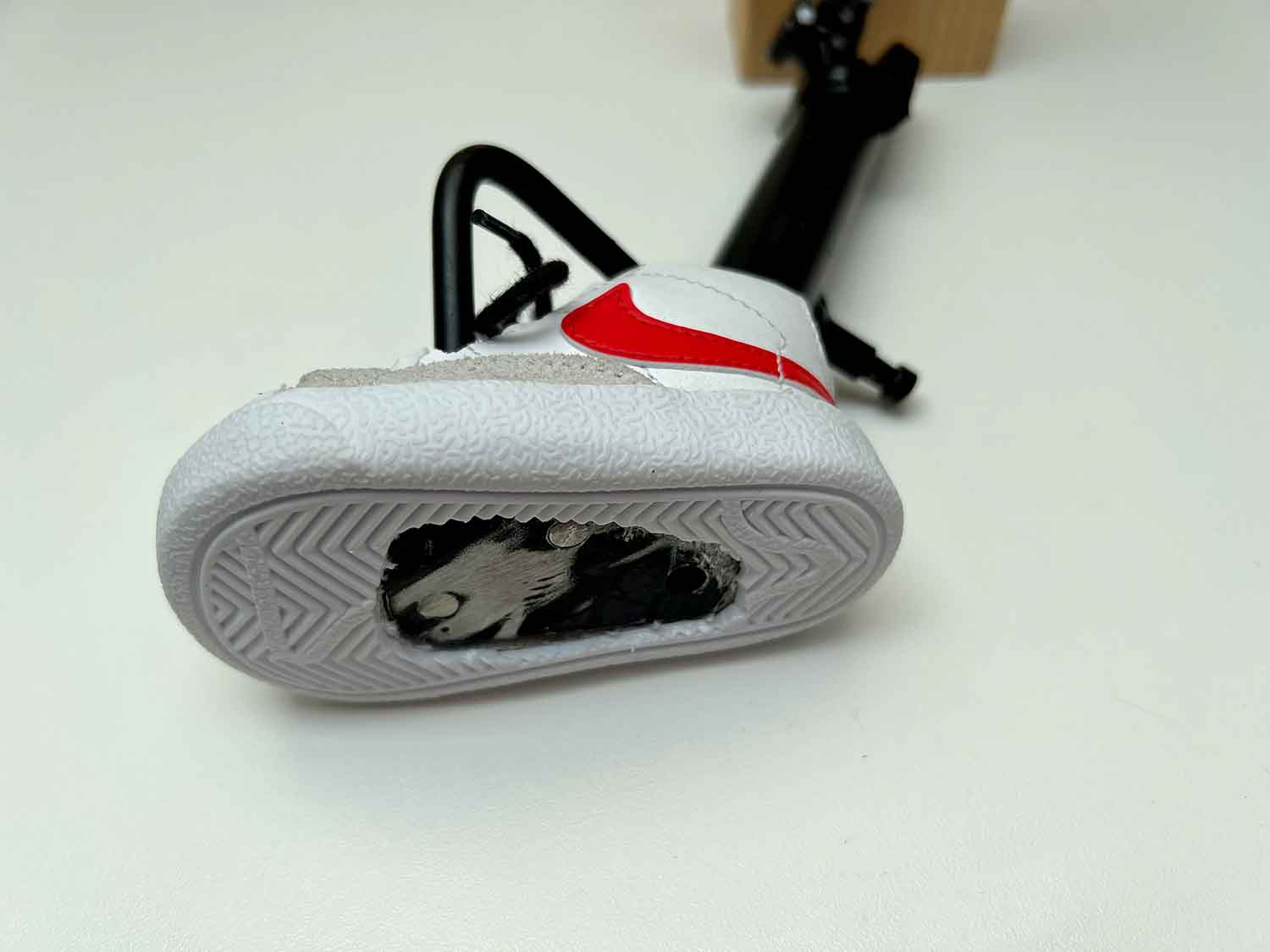 Bild 3u4: Schuh ausgestopft / Seitenständerplatte-Durchgang