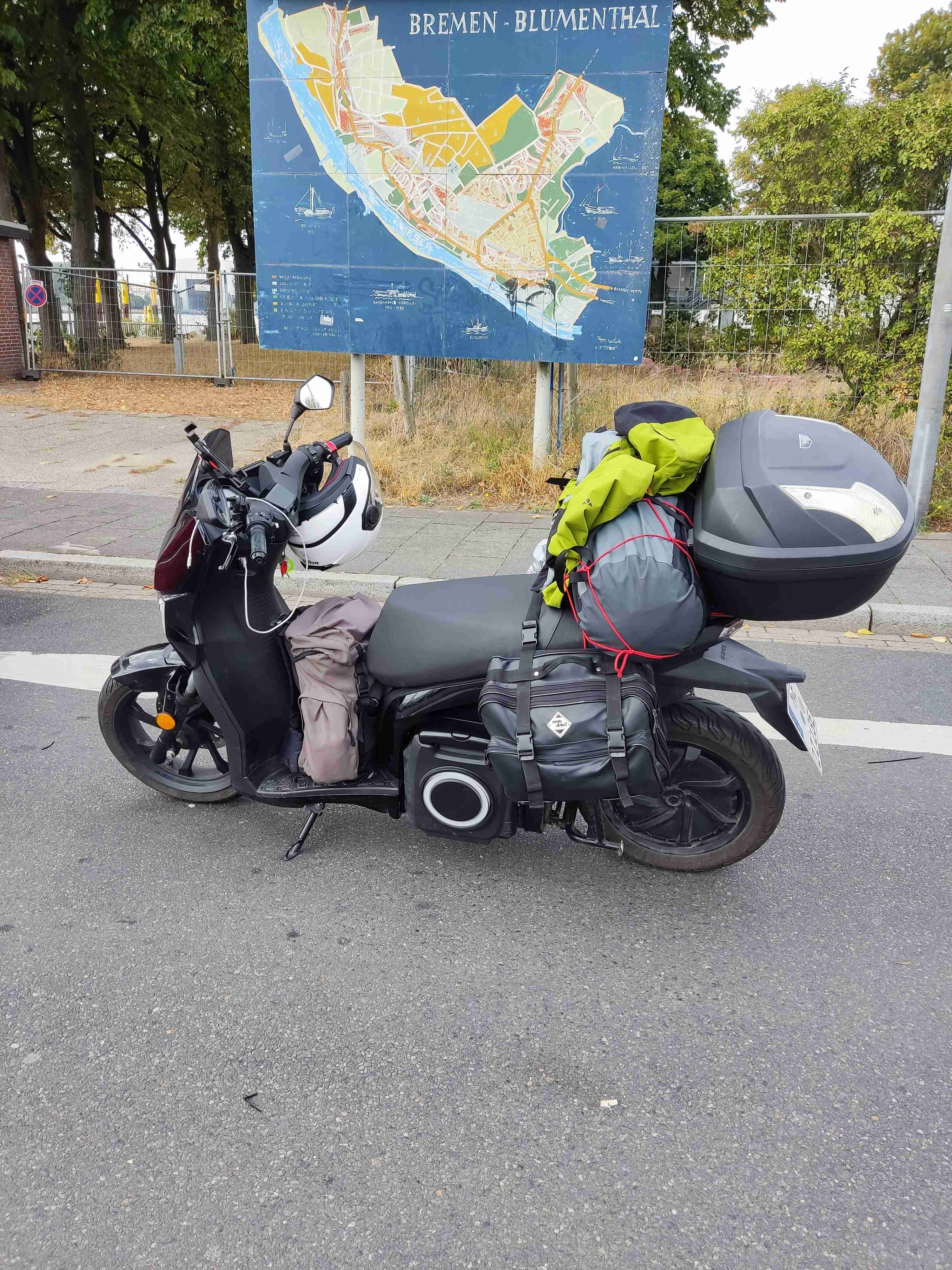 Die Tour stand schon seit längerem an. Das letzte mal auf 2 Rädern vor 15 Jahren hatte mit dem Verbrenner-Roller (Piaggio X-Evo 400) einfach zu viel Spaß gemacht, besonders, eine nicht genau geplante Tour zu unternehmen und nachmittags dann erst eine Übernachtung zu buchen. Größtmögliche Unabhängigkeit mit seinerzeit nicht ganz so viel Gepäck, da ohne Zelt-Equipment.