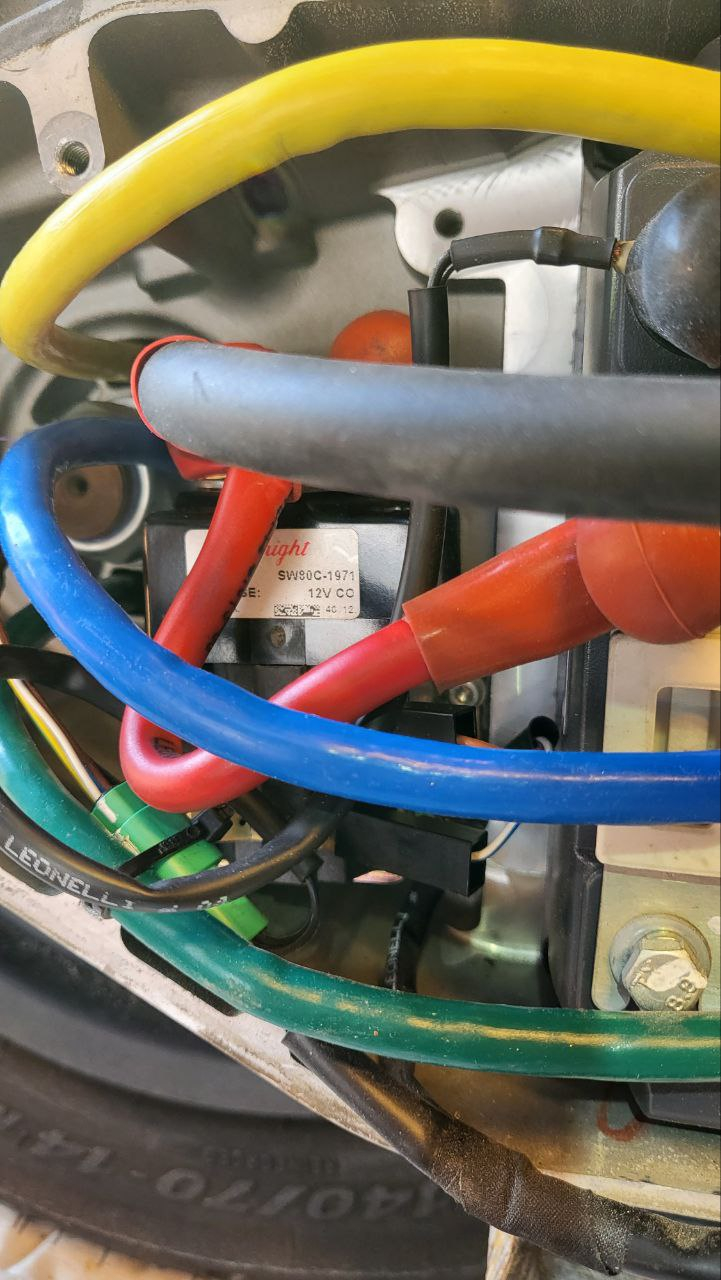 Wie @Error schon berichtete findet das 80er Schütz genau Platz dort wo das 60er sass. Nur dass die Kontakte um 90 Grad horizontal versetzt angeordnet sind und ebenfalls gerne Schrauben mit breiteren Köpfen bzw. Unterlegscheiben verwendet werden sollten da der Haltewinkel des 80er Schützes von Haus aus grössere Bohrungen für die Halteschrauben hat. Da ich das mit dem 90 Grad-Versatz der Kontakte vorher nicht wusste hatte ich bereits das "kurze" Kabel vom Schütz zum Sevcon falsch bestellt. Werde ich nächste Woche nachbessern und die Kontaktschuhe/ösen gleich mit 90-Grad-Drehung/Versatz aufpressen lassen.