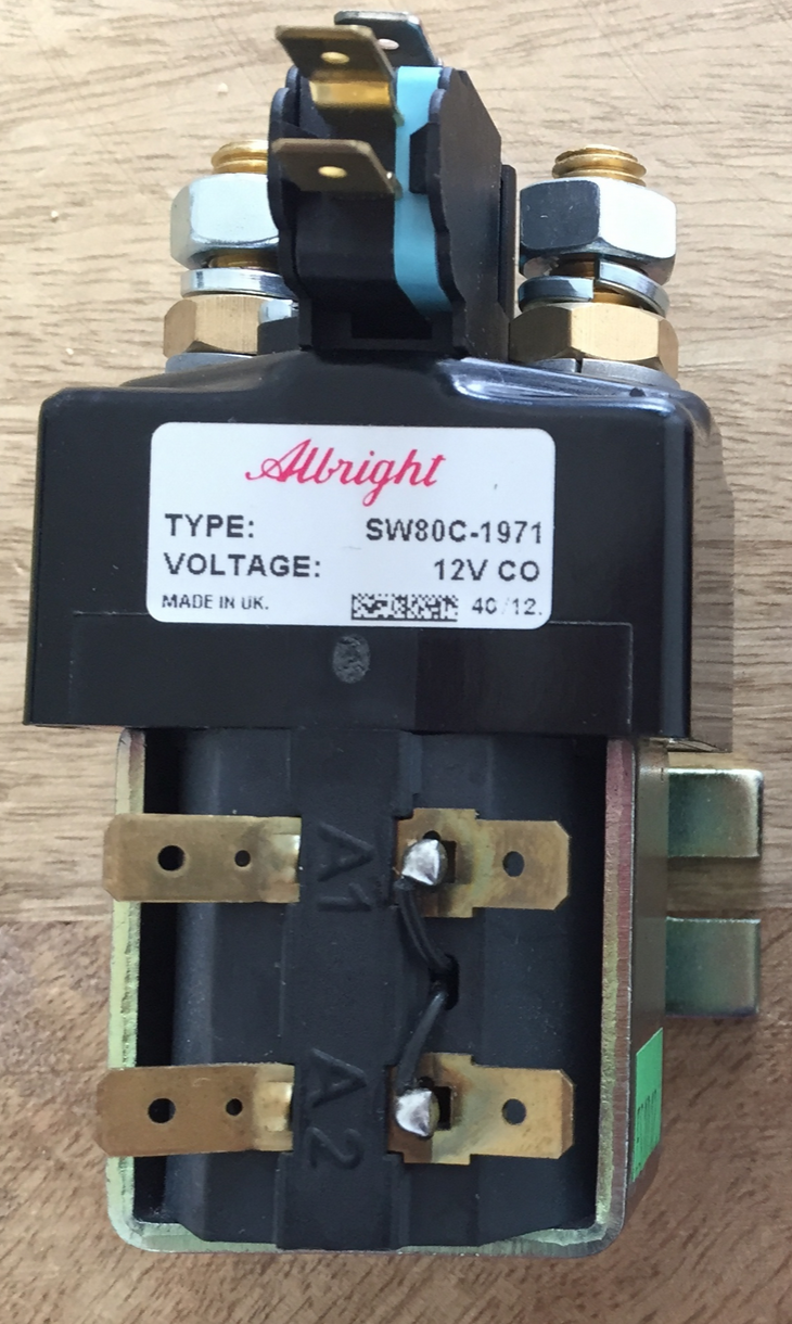 Das SU60B hat einen Spulenwiderstand von 23 Ohm und genehmigt sich so mal 6,3 Watt für die Einschaltung. Über den Schaltkontakt habe ich mal 5A aus dem Labernetzteil geschickt und dann 10 mV an den Schraubenenden gemessen, was erst mal 2 mOhm Übergangswiderstand sind - bei 230 Ampere (und ein Sevcon zieht auch mal mehr) bleiben da aber schon mal rechnerisch über 100 Watt auf der Strecke. Kein Wunder, dass das warm wird.
