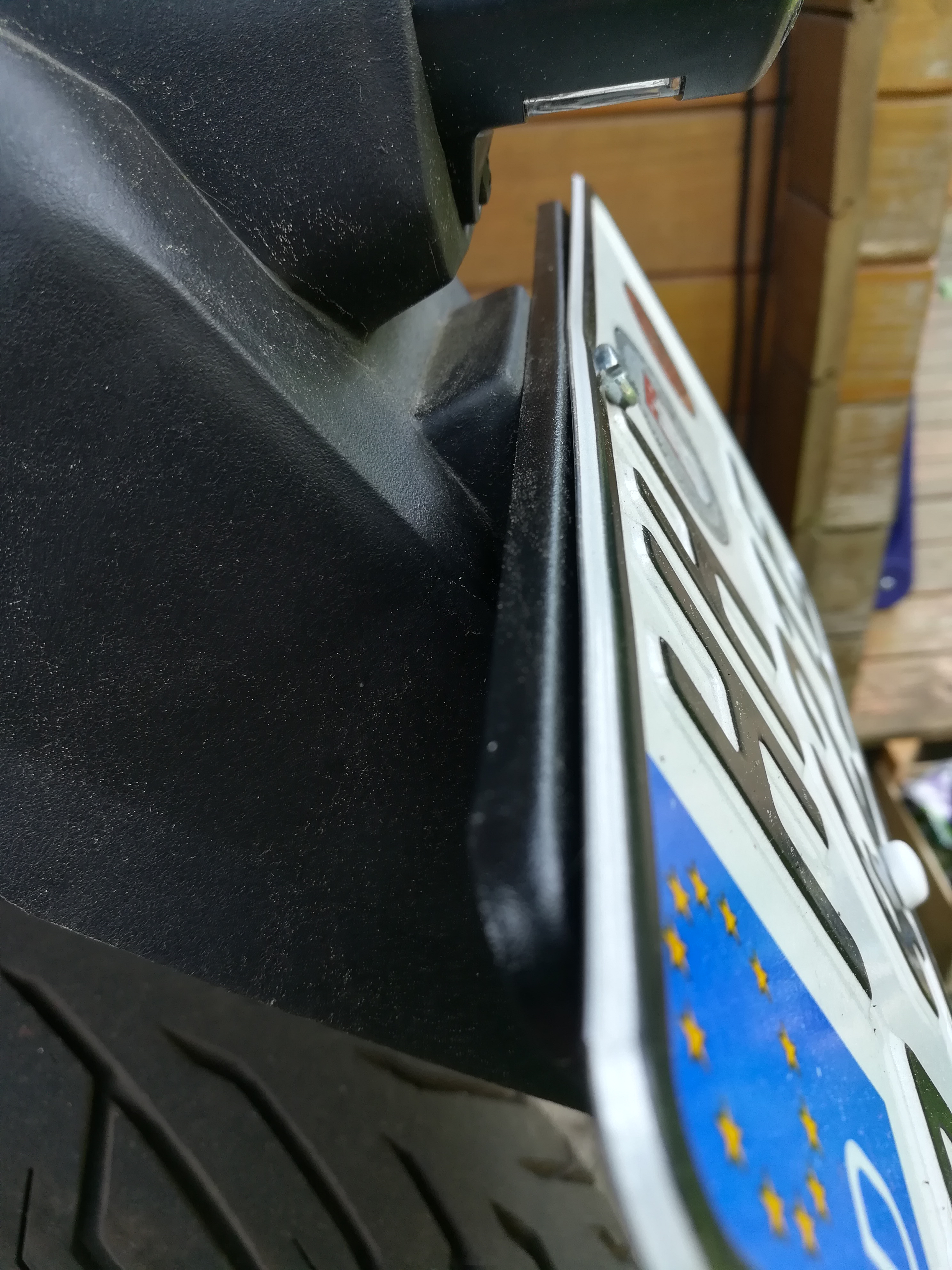 Bei mir hat mein Händler dankenswerterweise eine richtige Platte spendiert und montiert (m. Schrauben & Muttern). Ohne Halterung hätte ich Angst, dass es sehr schnell verbiegt (bei der Geschwindigkeit...)